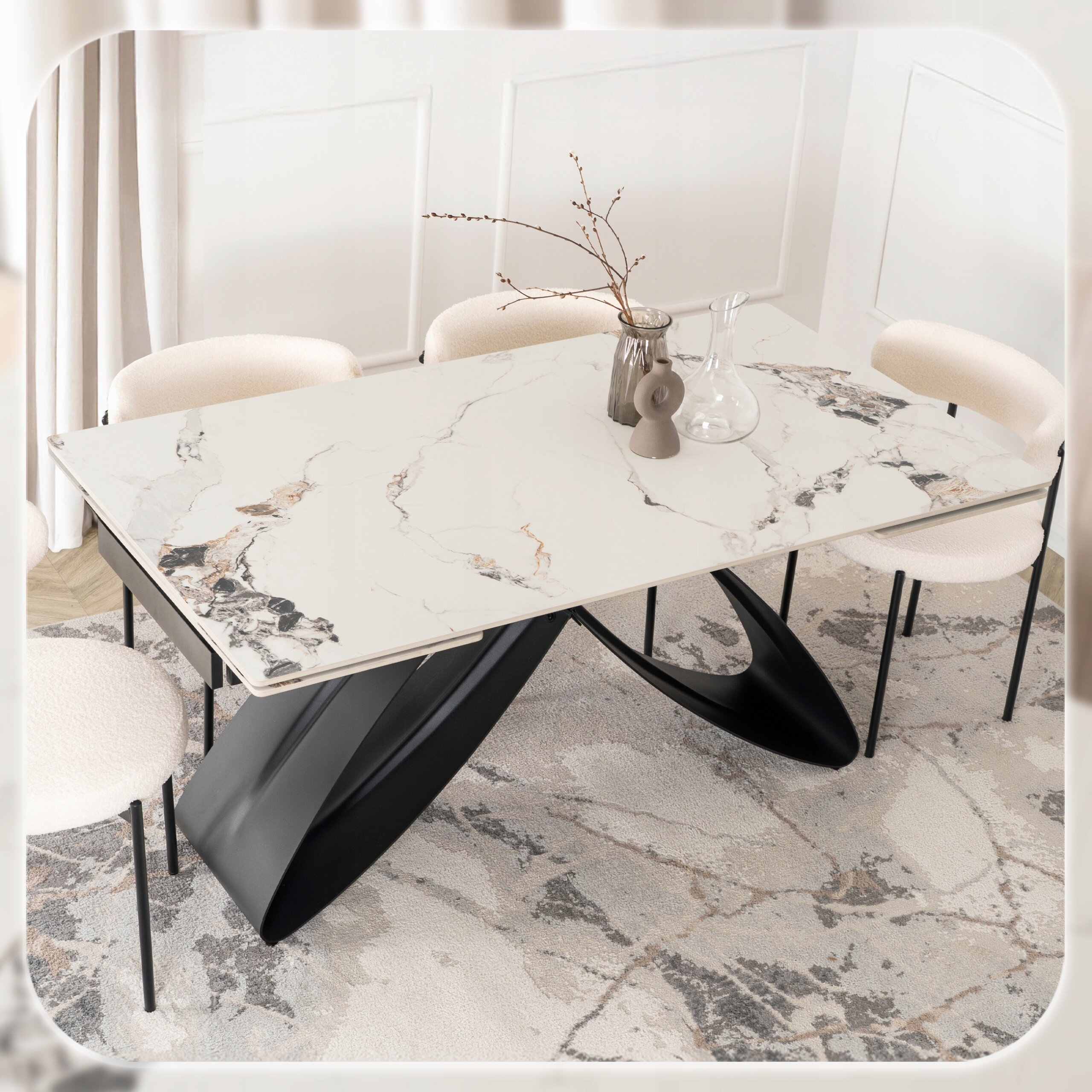 Ten stół to kwintesencja luksusu zaklęta w ceramice klasy premium, połączenie wyrafinowanego stylu i perfekcyjnego wykonania, które przyciąga wzrok i wzbudza zachwyt.