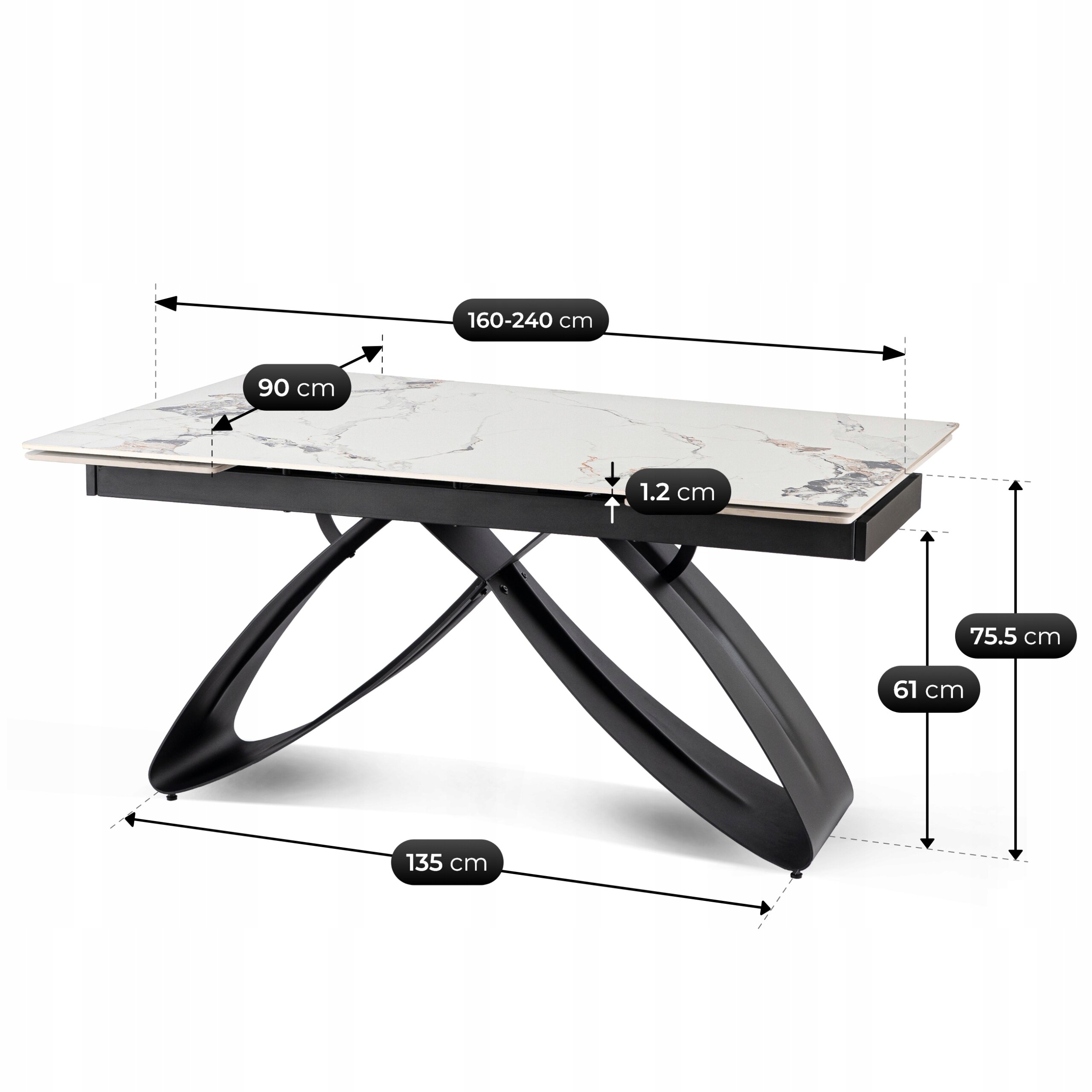 - Długość blatu: 160-240 cm