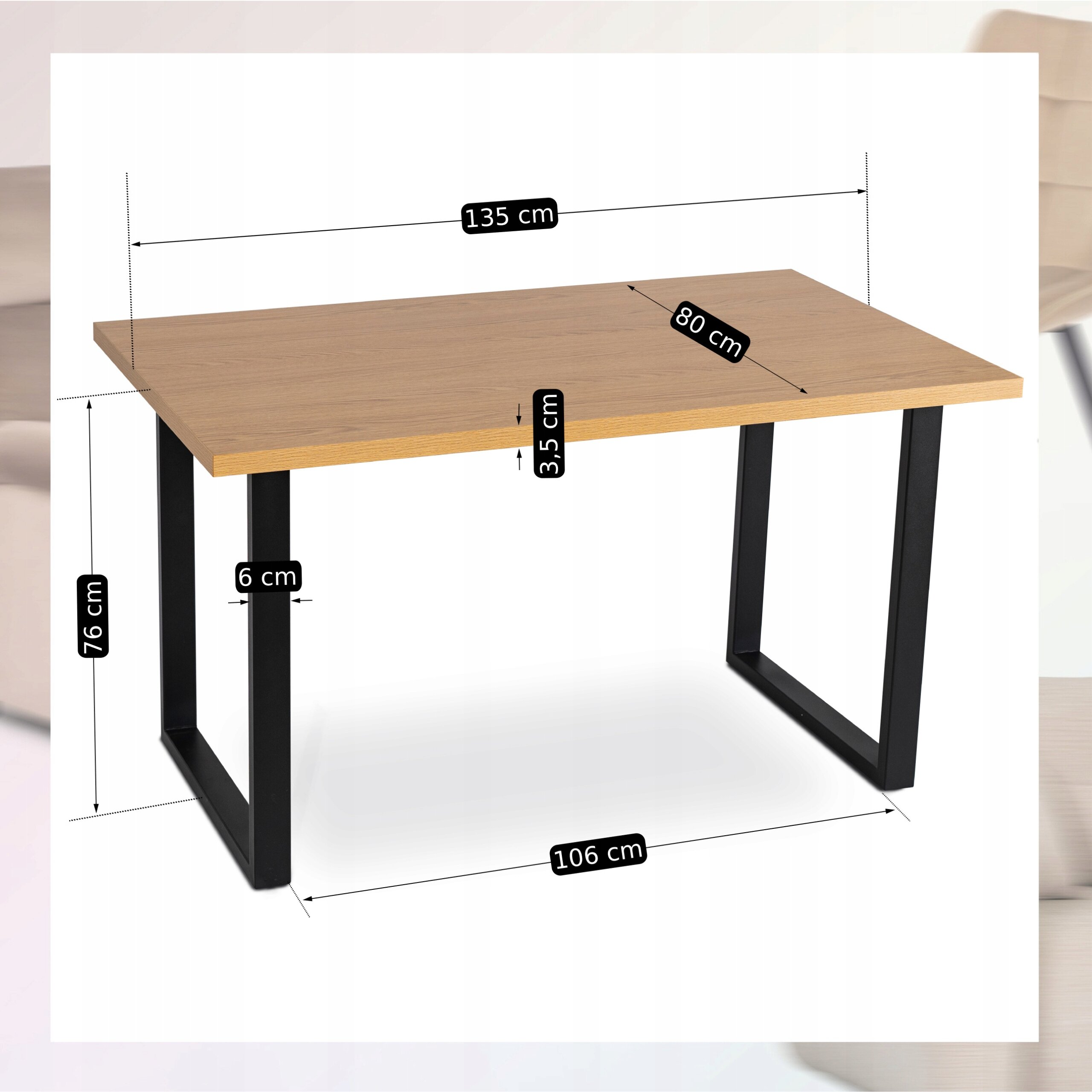 Stół Kuchenny Loft do Jadalni Salonu GLOS 2 Dąb Drewniany Industrialny