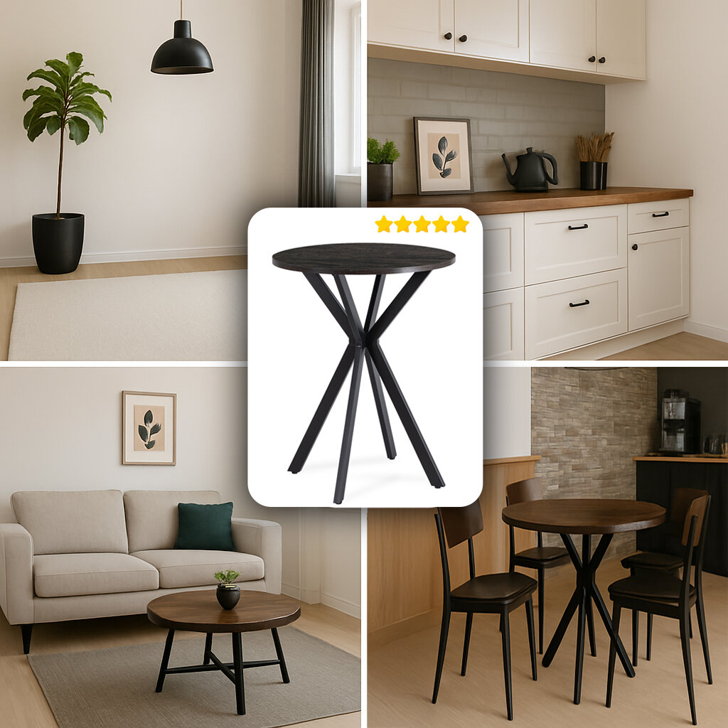 ✨ Stół Okrągły Kuchenny Do Salonu Jadalni Kuchni Stolik 60 cm Czarny LAUREN
