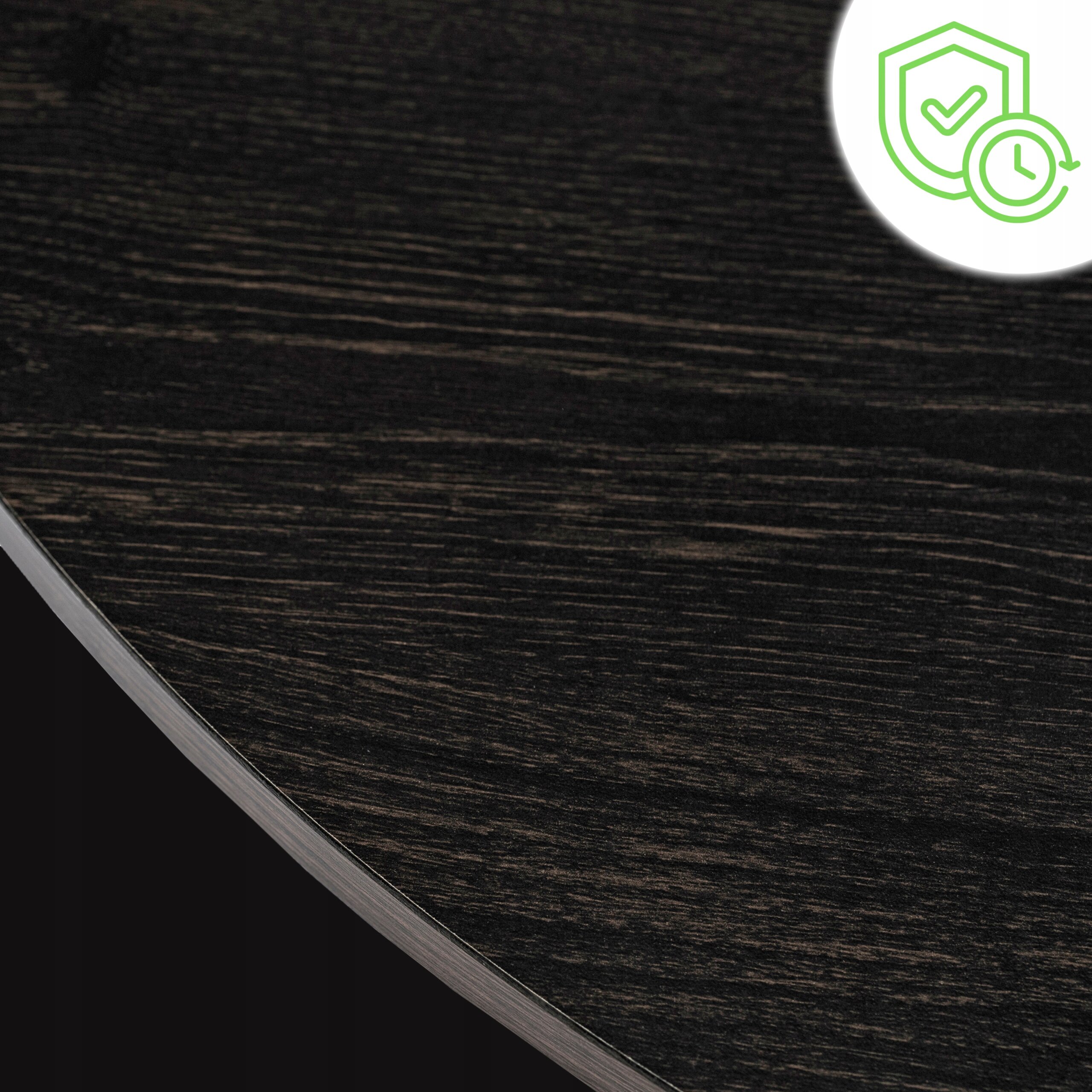 Blat wykonano z płyty MDF z wykończeniem w kolorze czarnego drewna. Materiał ten zapewnia trwałość, a jednocześnie efektowny wygląd z widocznym usłojeniem. Powierzchnia blatu jest zabezpieczona warstwą ochronną ułatwiającą pielęgnację.