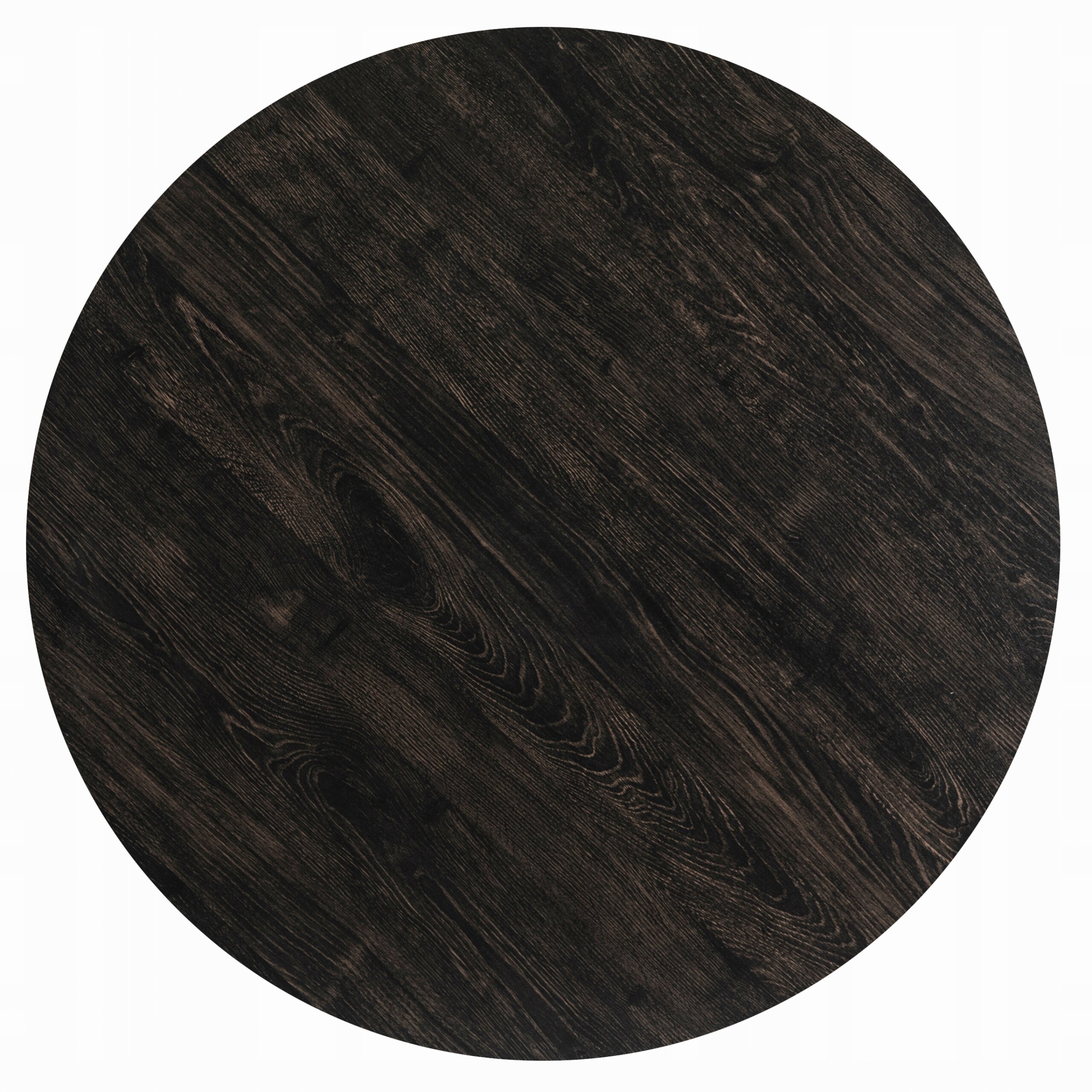 Blat stołu wykonany jest z wytrzymałej płyty MDF w kolorze czarnego drewna.