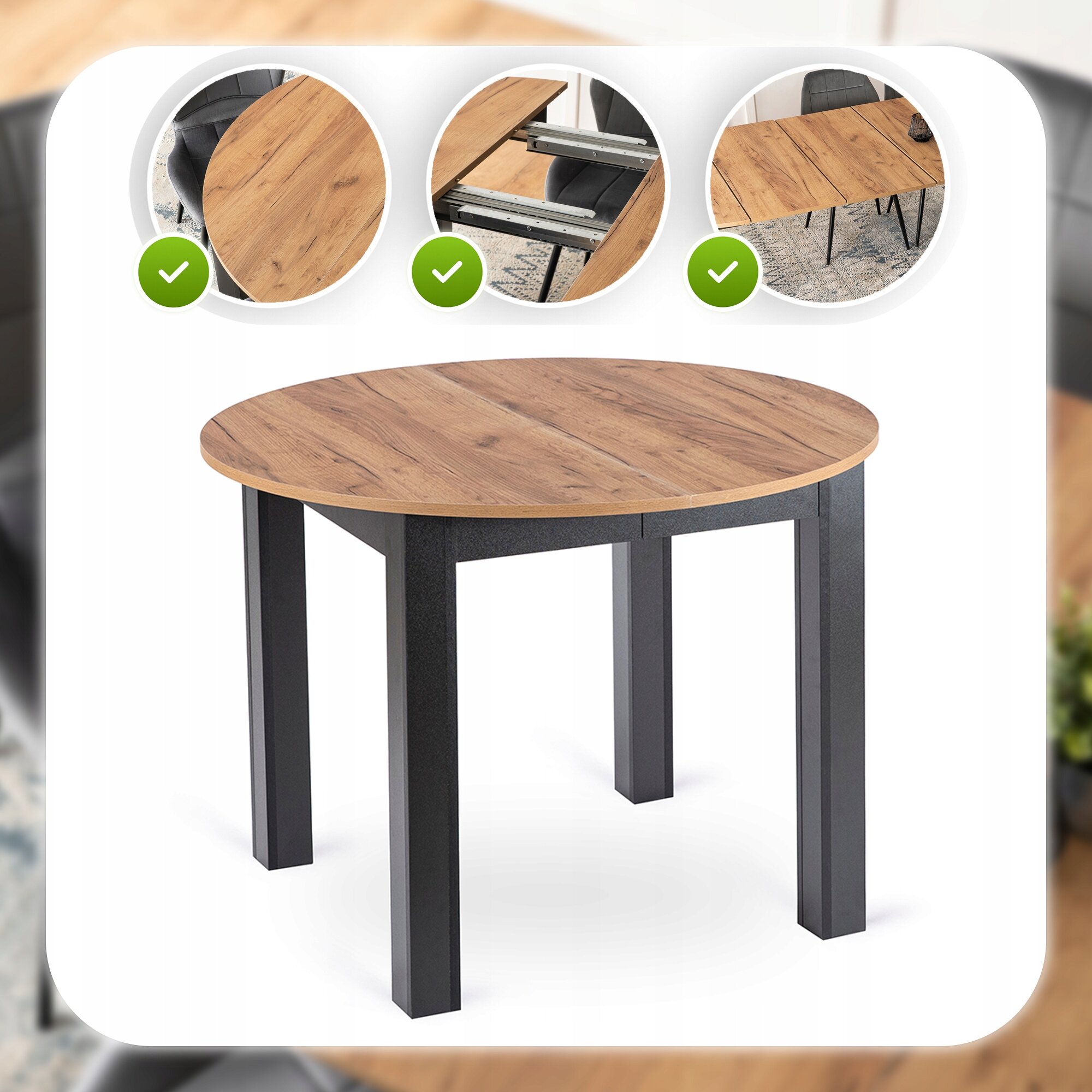 - Stół Okrągły Rozkładany Kuchenny Do Jadalni Salonu Duży Craft JAMES 100/220