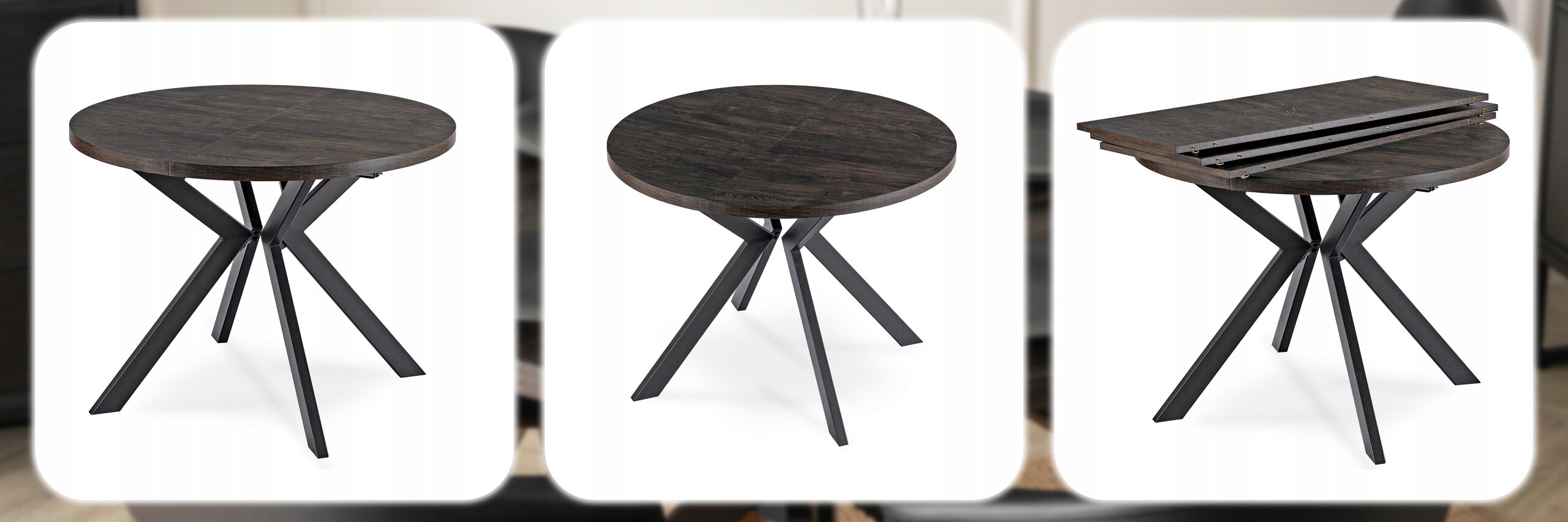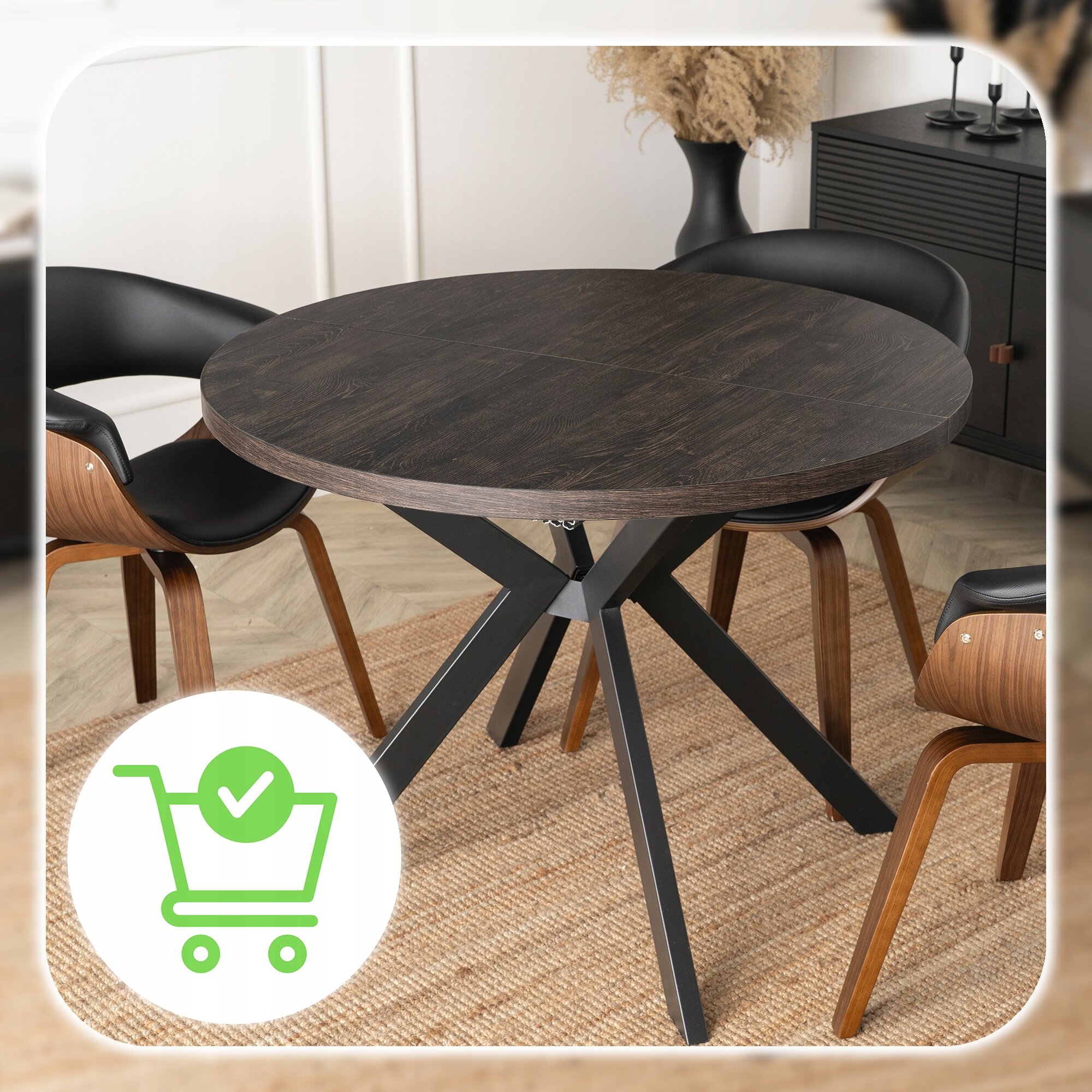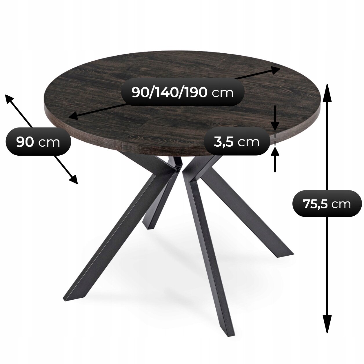 Stół Okrągły Rozkładany Kuchenny Do Jadalni Salonu Czarny Dąb LUKAS ⭐⭐⭐⭐⭐