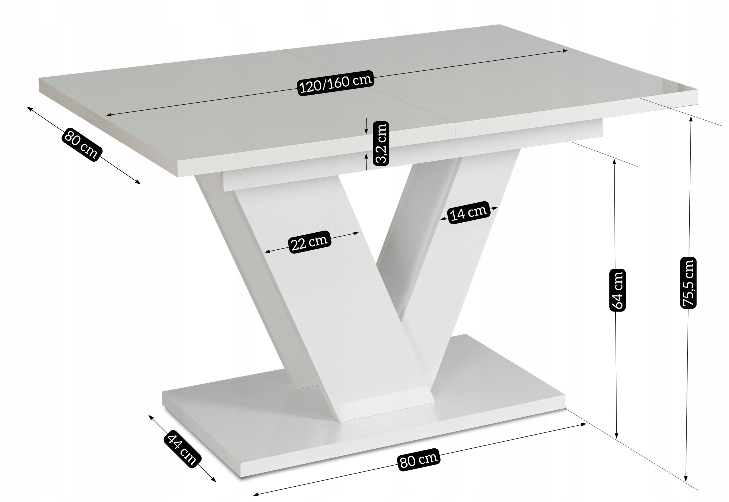 - Wysokość stołu: 75,5 cm