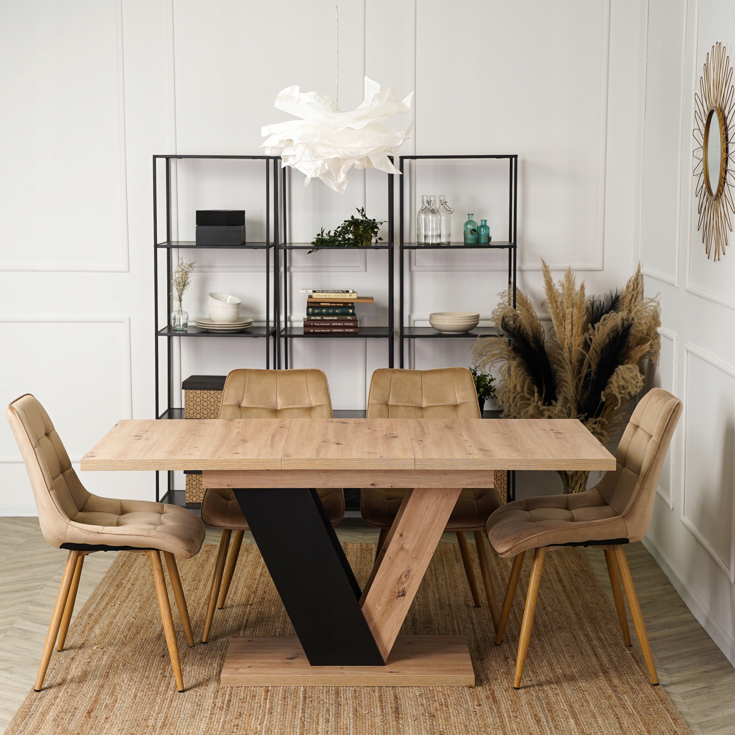 - Stół prostokątny rozkładany CLARK w kolorze dąb artisan i czarny mat