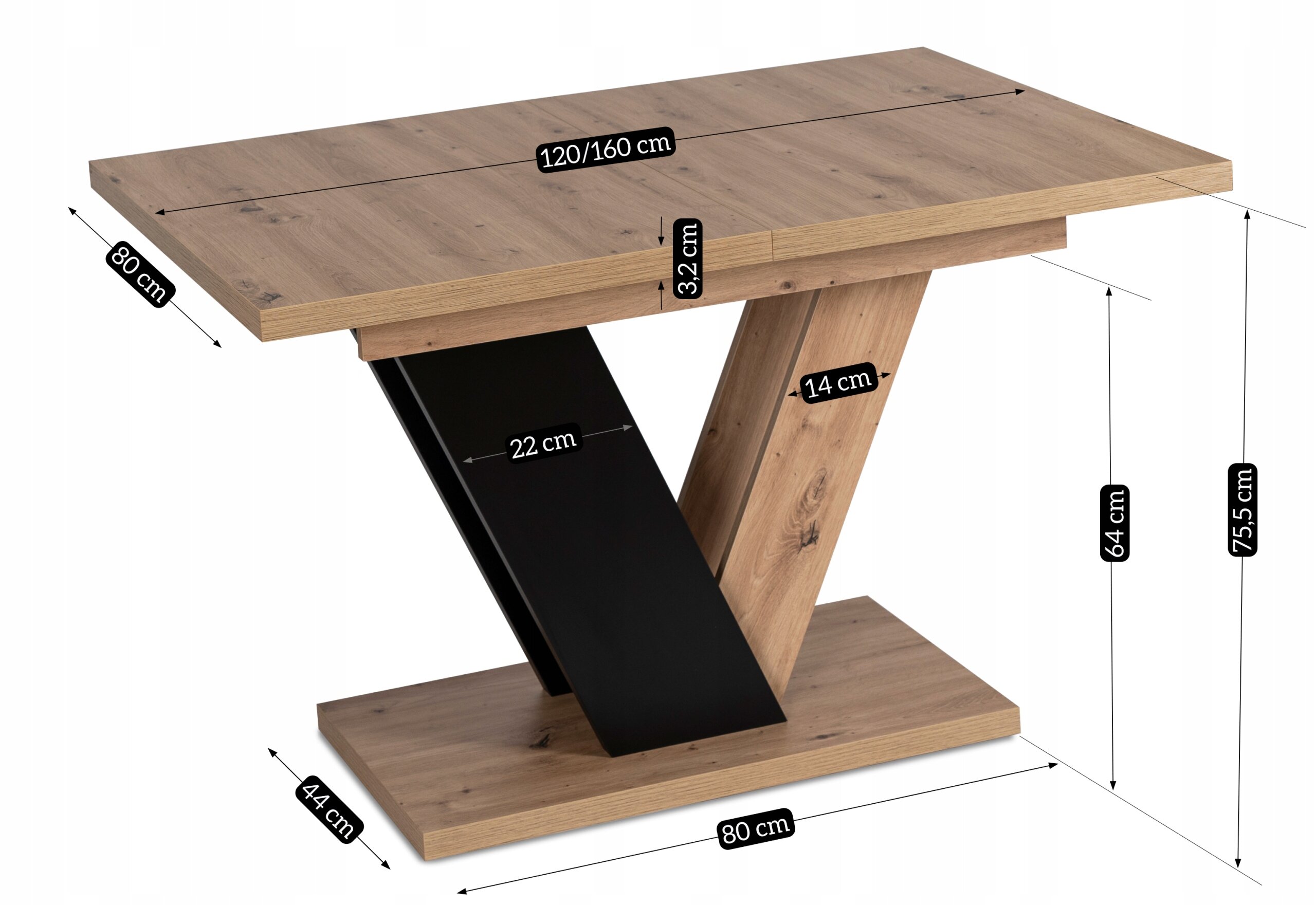 Długość blatu po rozłożeniu wynosi 160 cm:
