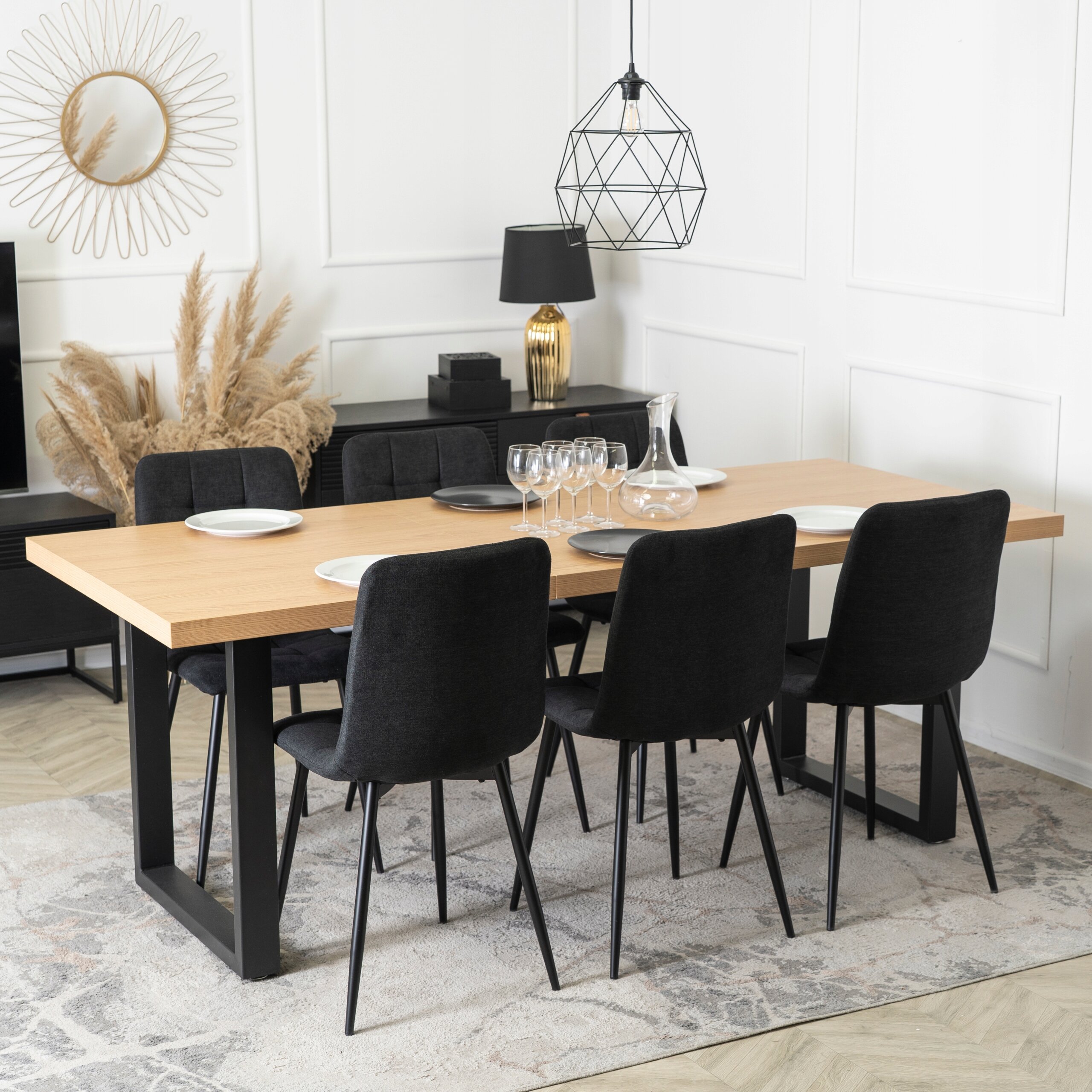 ⭐ Matowe nogi stołu są ze sobą złączone i mają kształt ramy. Zostały wykonane z malowanego na czarno metalu.