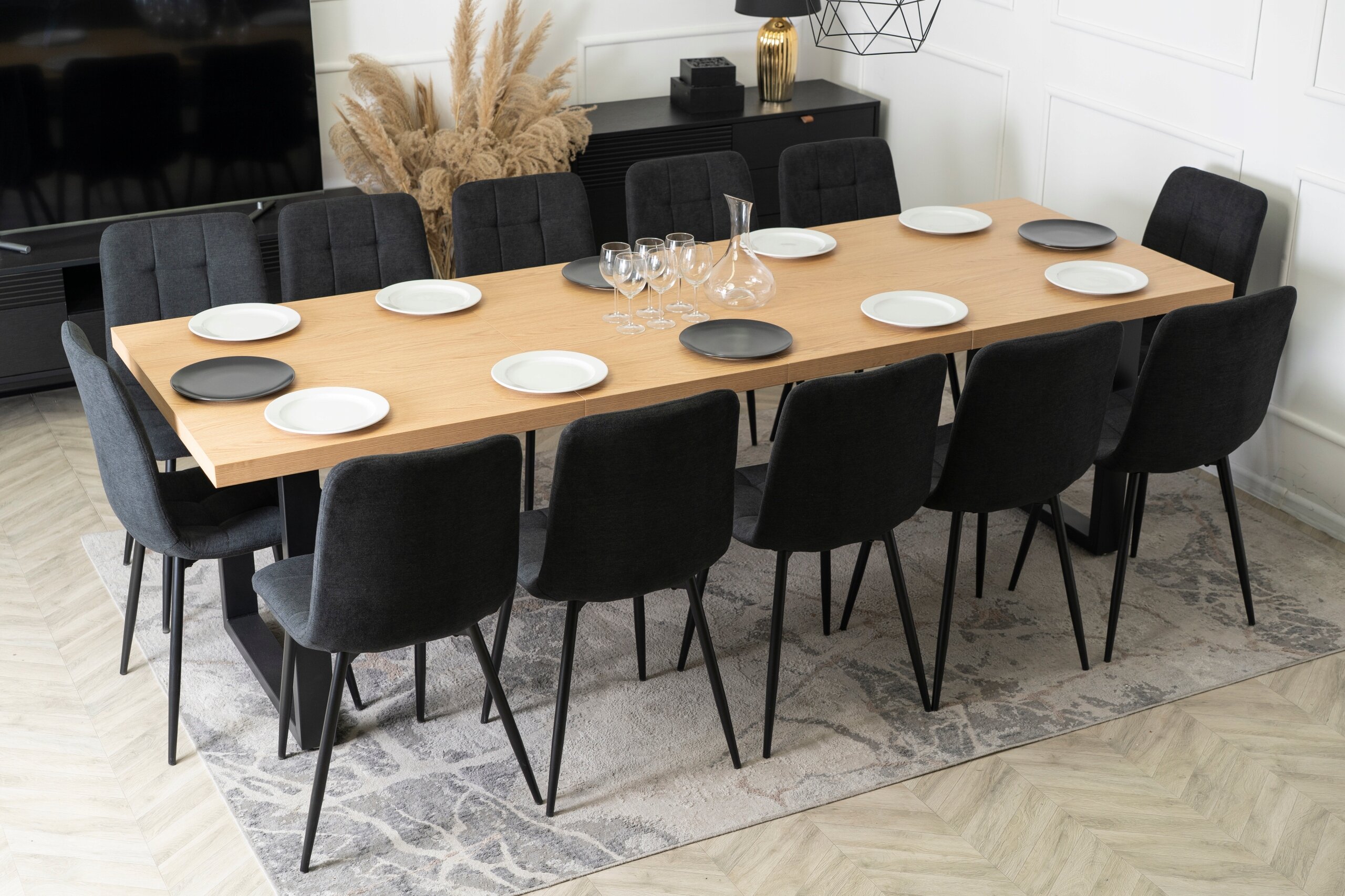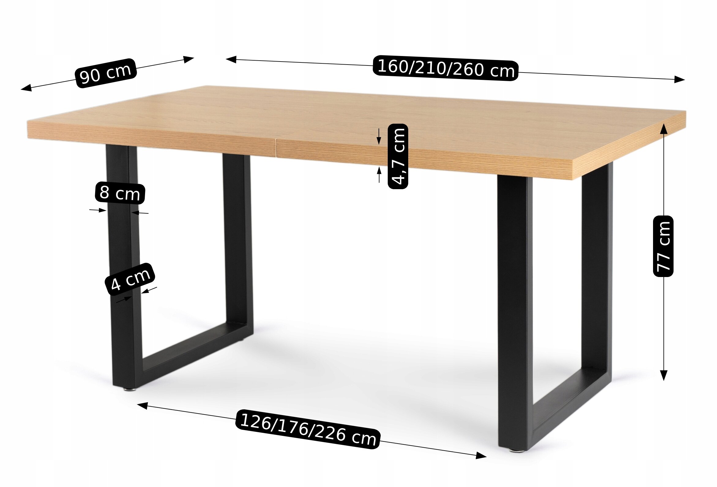 ⭐ Stół posiada dwie wkładki powiększające, które mierzą po 50 cm długości. Za ich pomocą rozłożysz blat do 210 i nawet 260 cm.