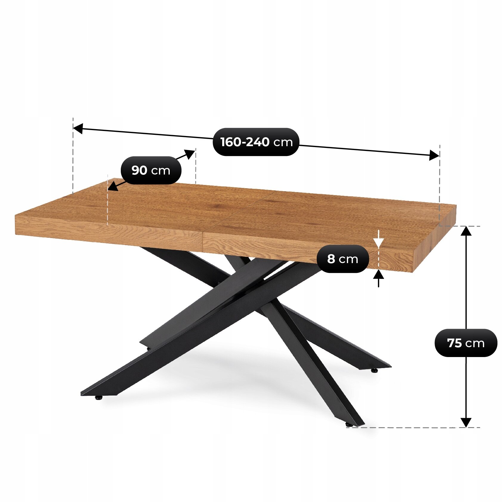 - Po pełnym rozłożeniu stół osiąga aż 240 cm długości, zapewniając wygodne miejsce dla większej liczby gości.