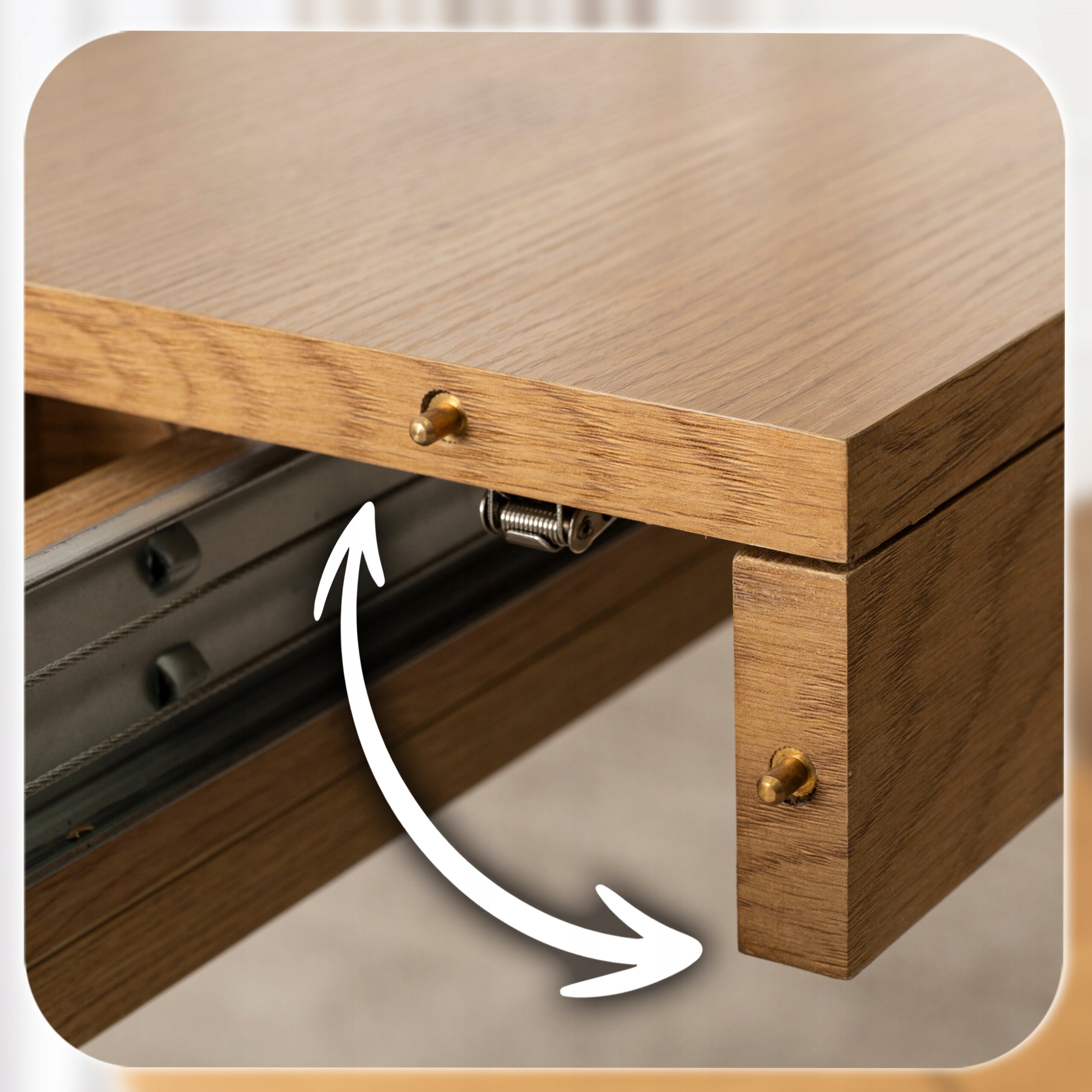 Pod blatem stołu znajdują się prostokątne schowki, które idealnie sprawdzą się do przechowywania sztućców, serwetek czy innych niezbędnych akcesoriów stołowych.