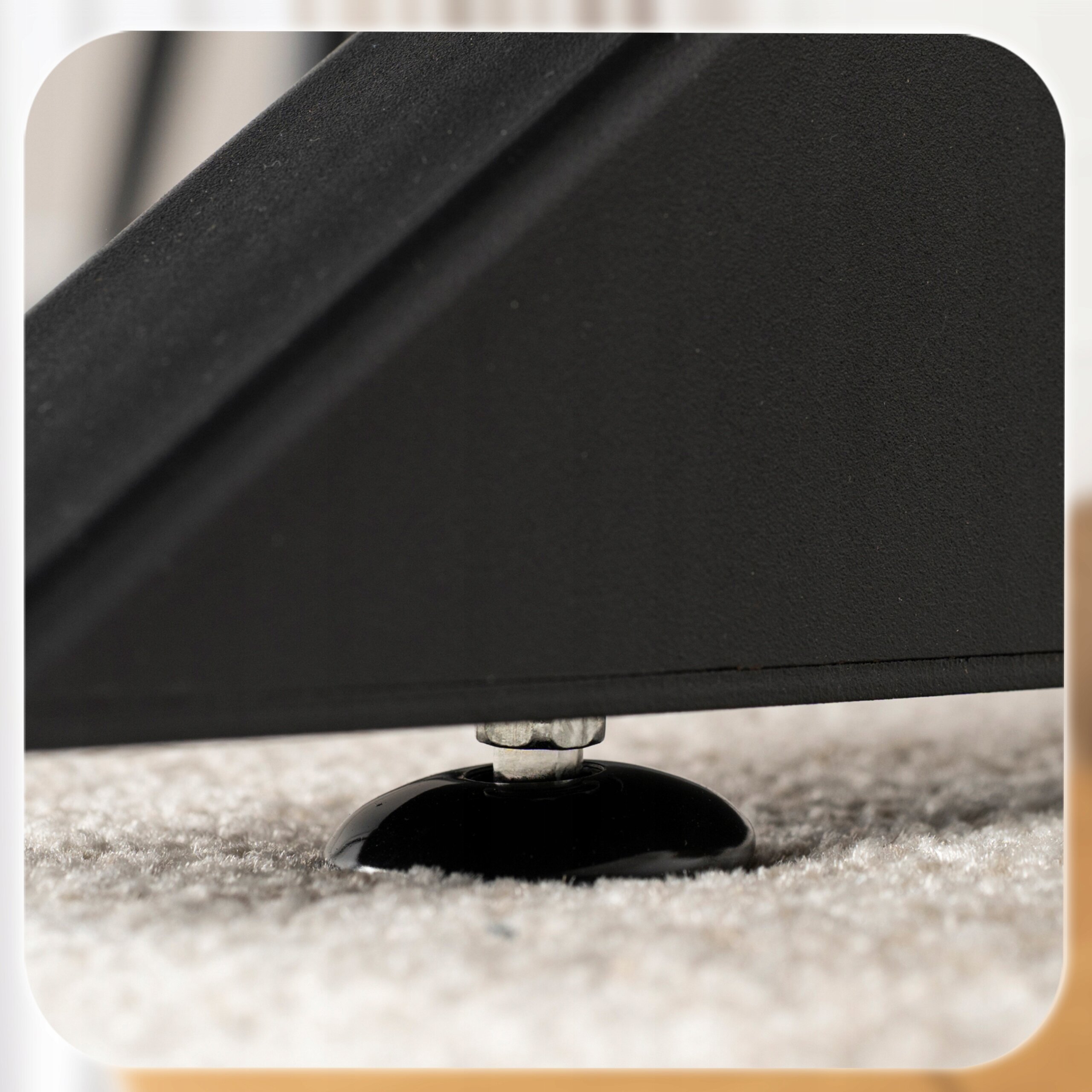Regulowane stopki umieszczone na spodach metalowych nóg umożliwiają precyzyjne wypoziomowanie mebla nawet na nierównej powierzchni.