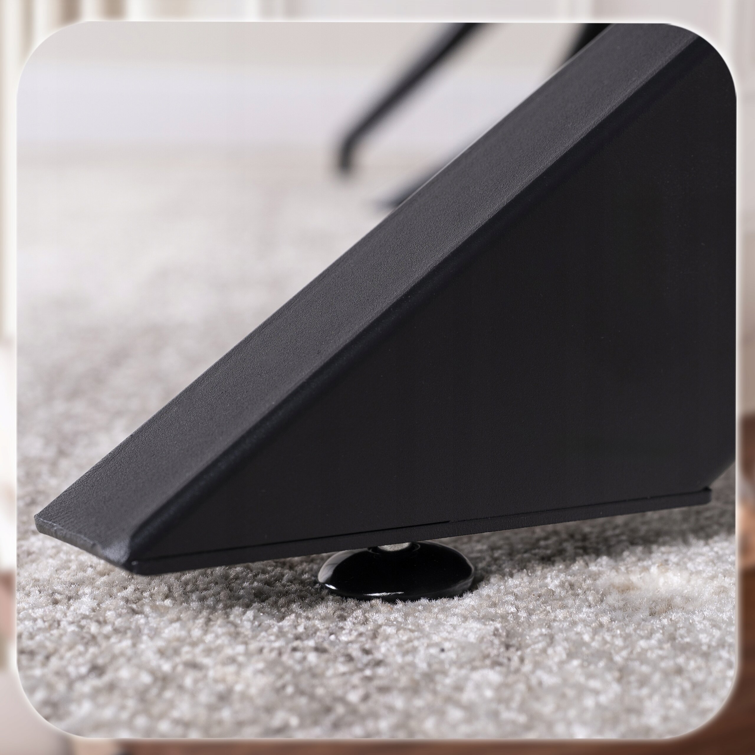 Regulowane stopki umieszczone na spodach metalowych nóg umożliwiają precyzyjne wypoziomowanie mebla nawet na nierównej powierzchni.