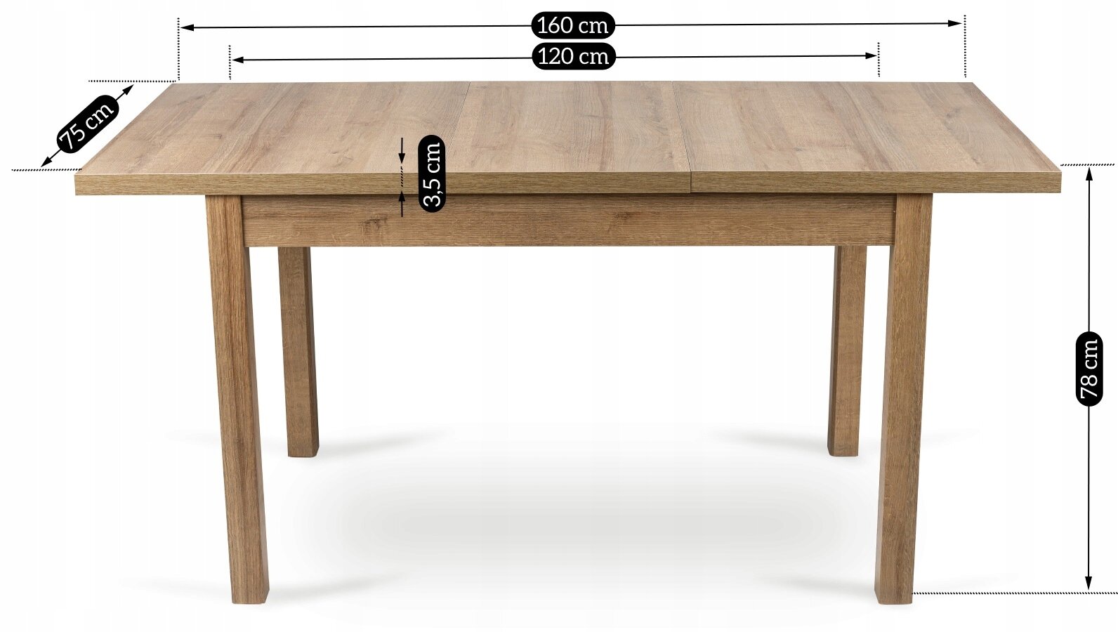 Stół Rozkładany Kuchenny 120-160 Do Salonu Jadalni Kuchni SKUBI Dąb Riviera