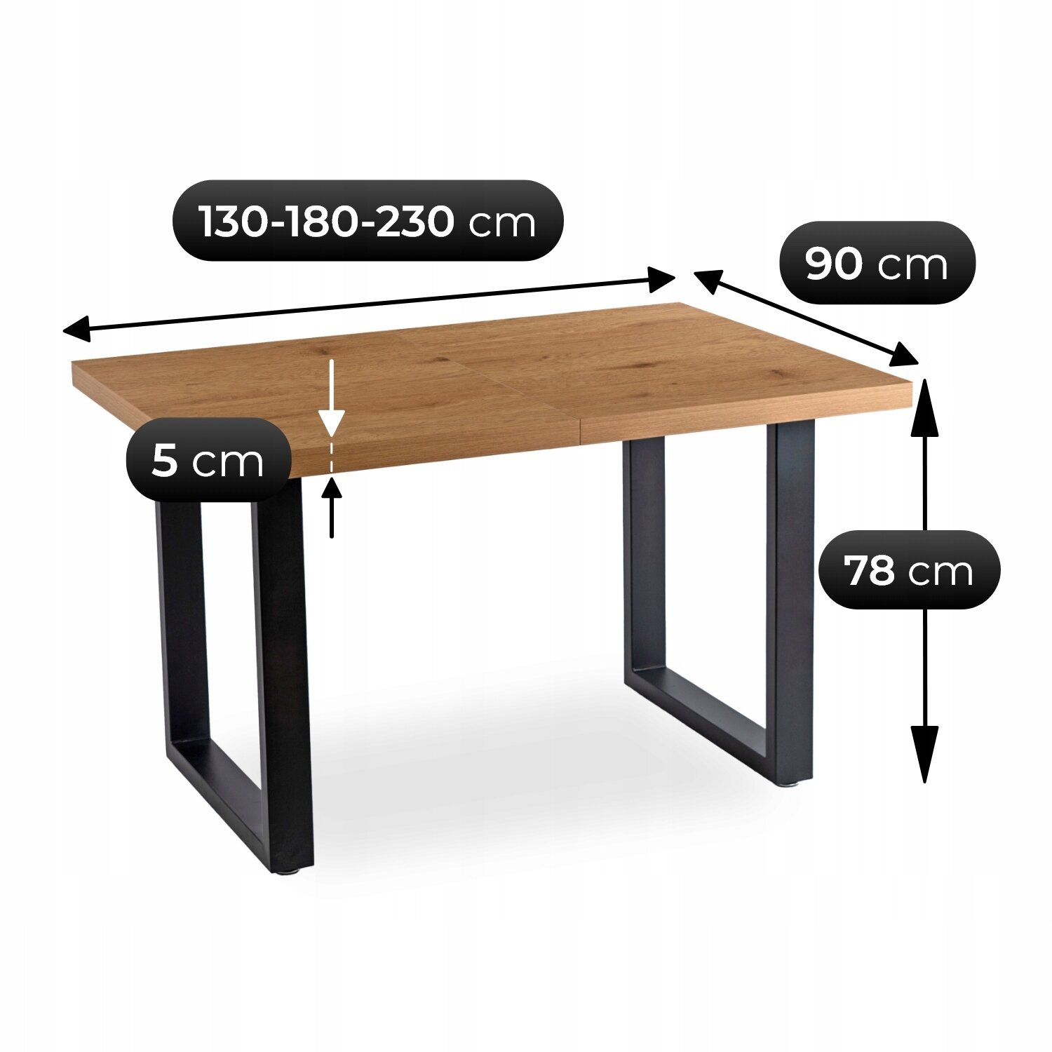 Stół o wymiarach 130-180-230 × 90 × 78 cm to doskonały wybór do jadalni, salonu lub kuchni.