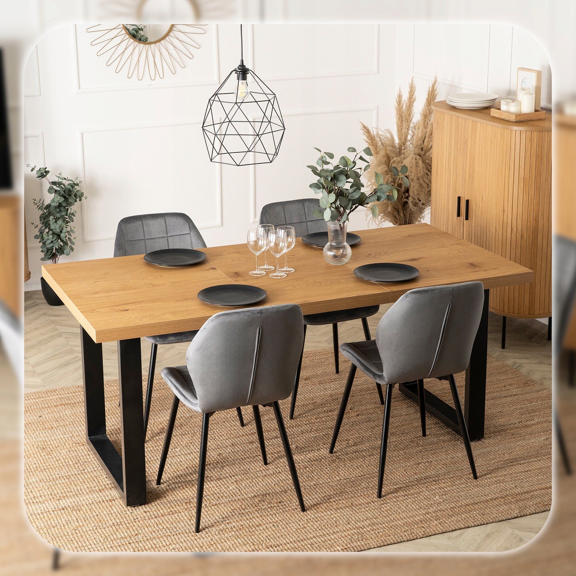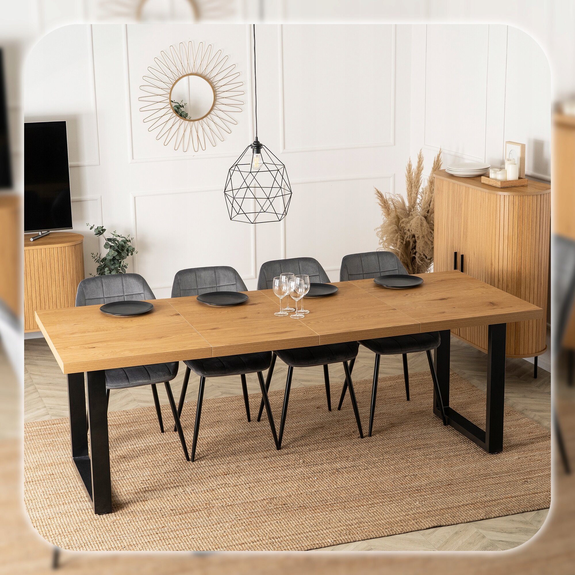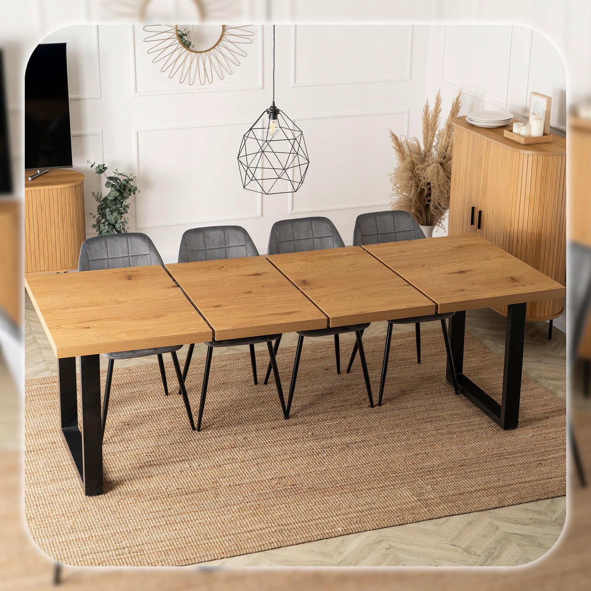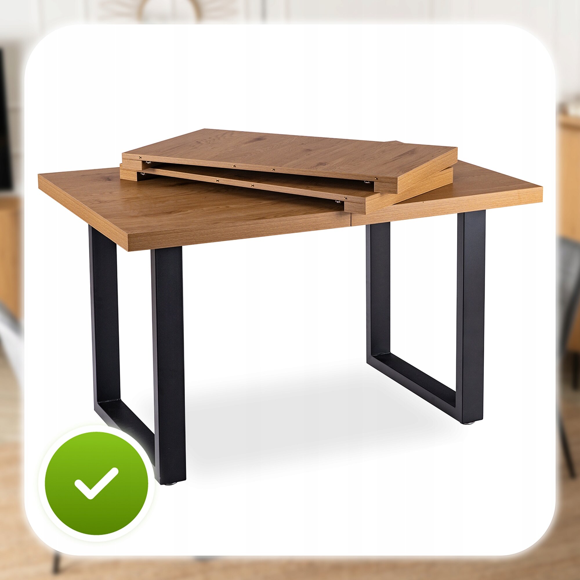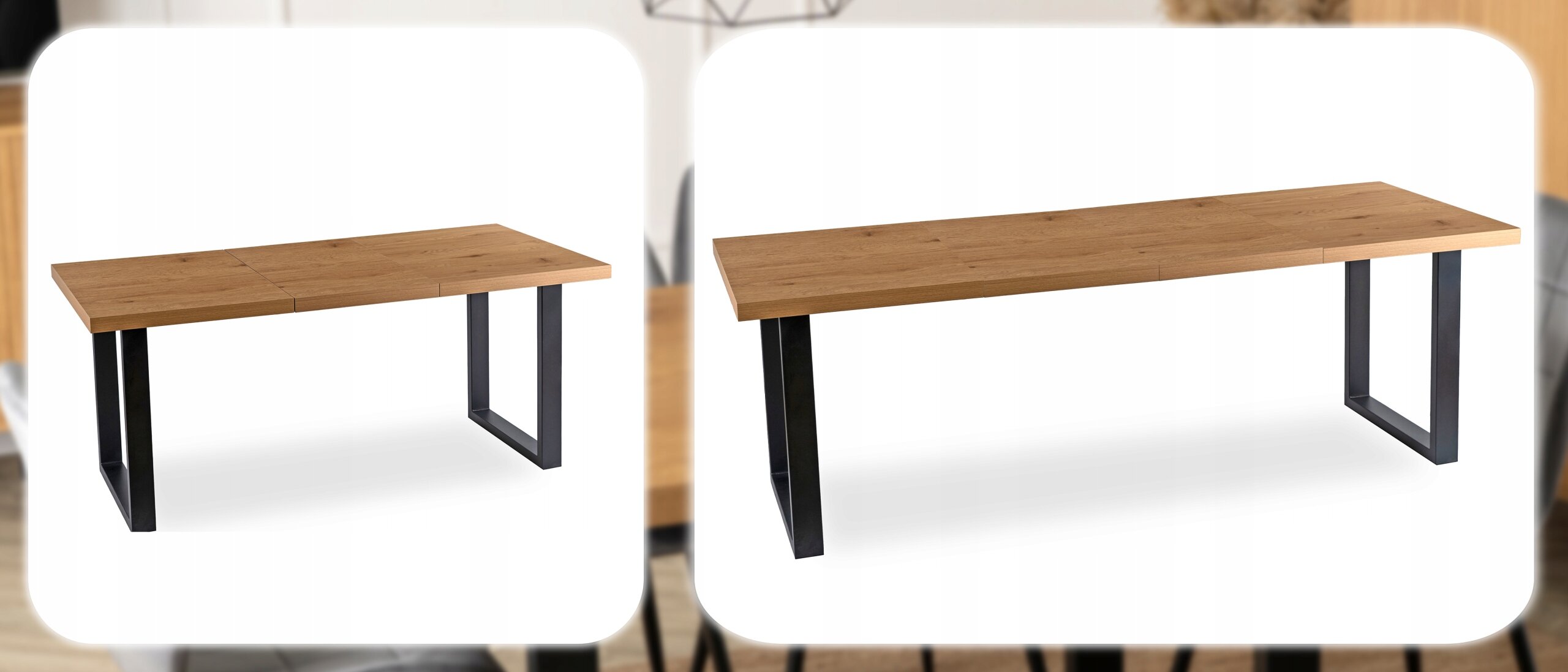 Dzięki prostemu mechanizmowi rozkładania oraz solidnej konstrukcji na czarnych metalowych nogach, stół jest nie tylko praktyczny, ale również stabilny i elegancki w każdej konfiguracji.