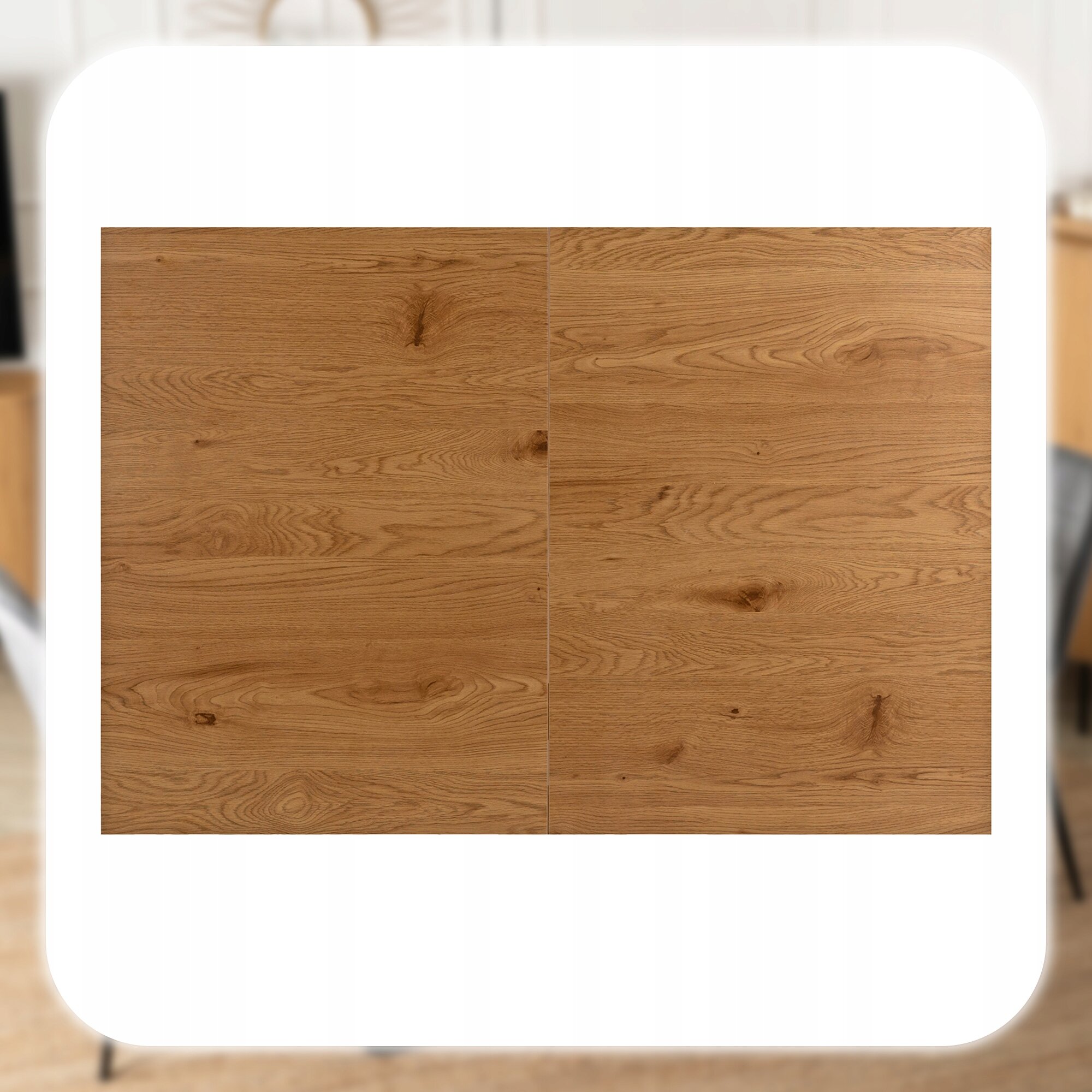 Blat stołu TOMAS został wykonany z wysokiej jakości płyty laminowanej w kolorze dębu, wykończonej trwałą i elegancką powłoką.
