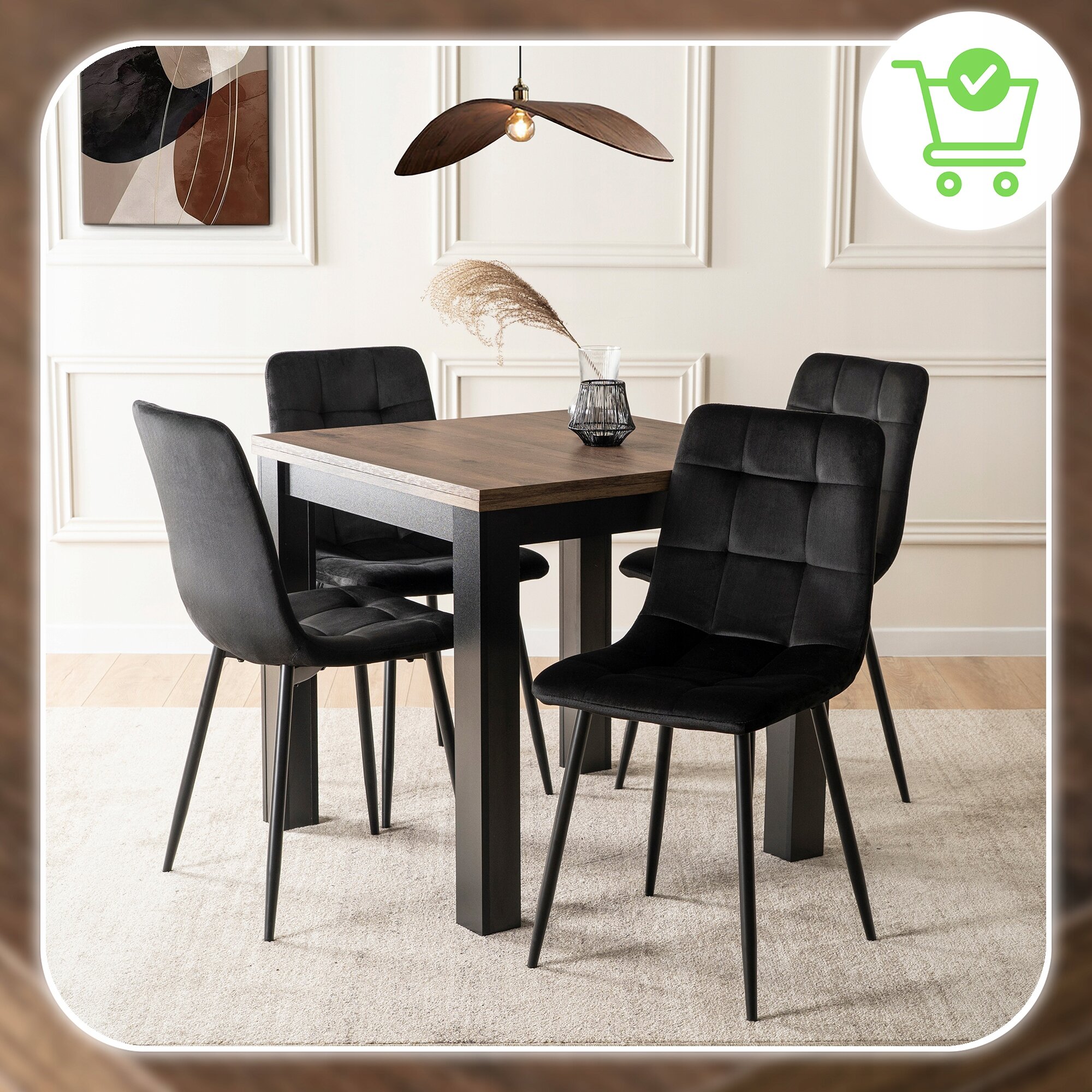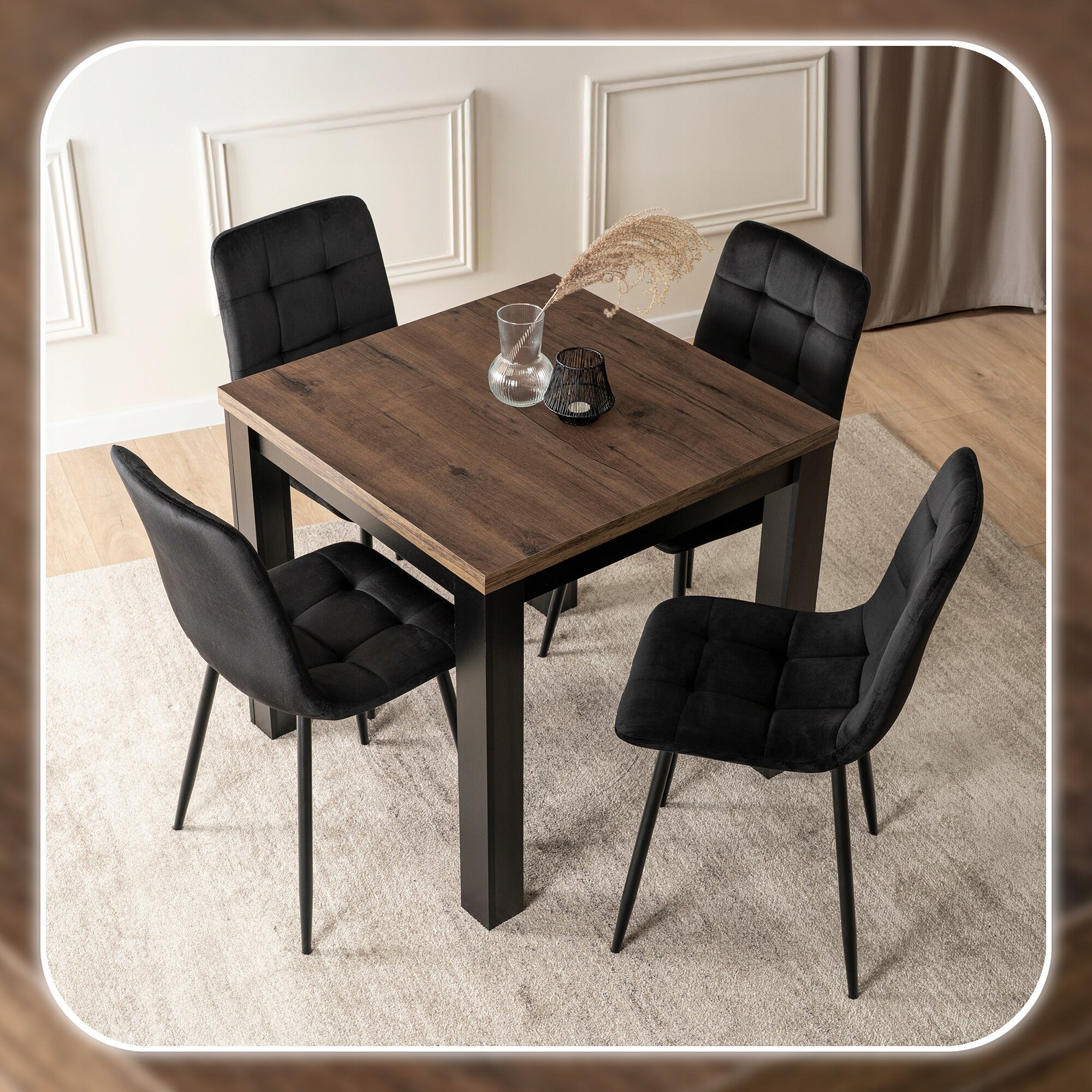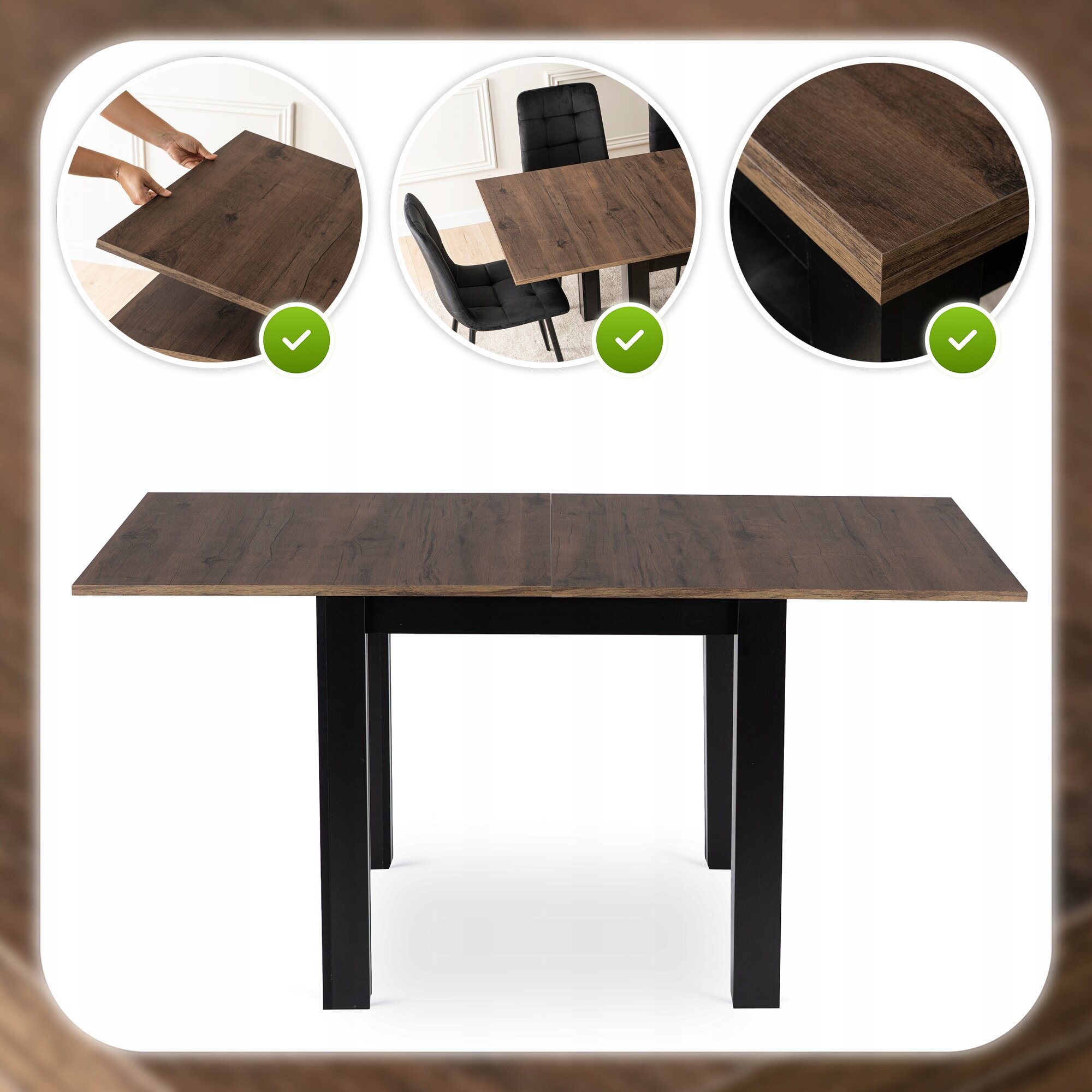 Stół o wymiarach 80/160 x 80 x 78,5 cm to piękny mebel idealny do kuchni, jadalni, salonu. Ma kwadratowy, rozkładany blat w modnym kolorze dąb craft. Czarne nogi dodają loftowego, industrialnego charakteru.
