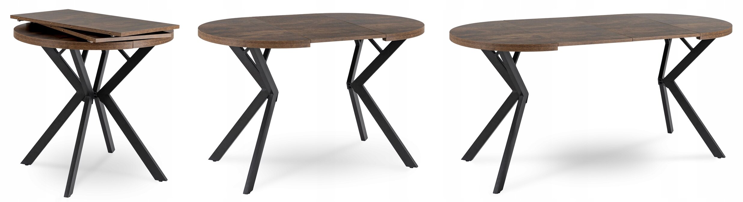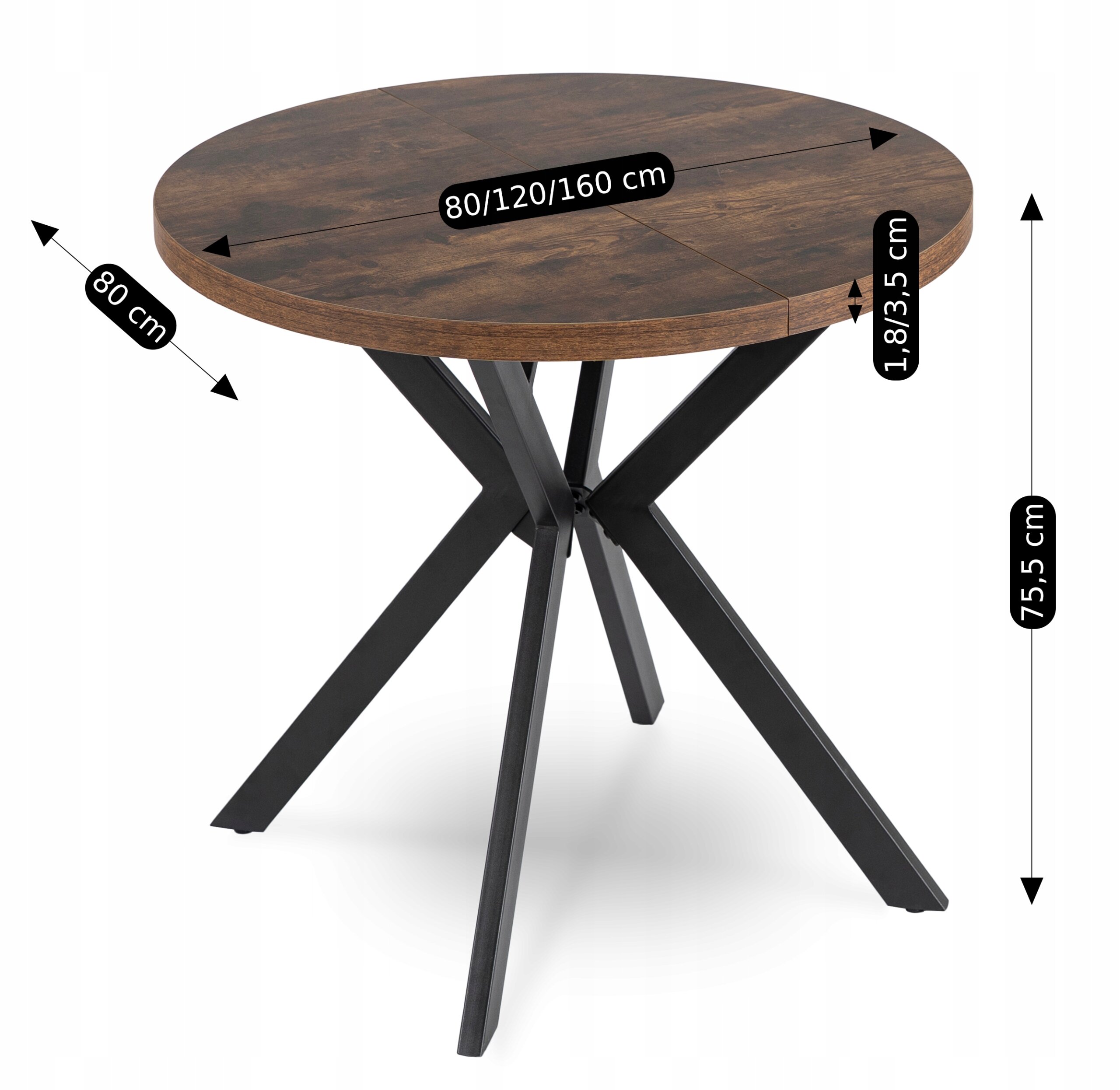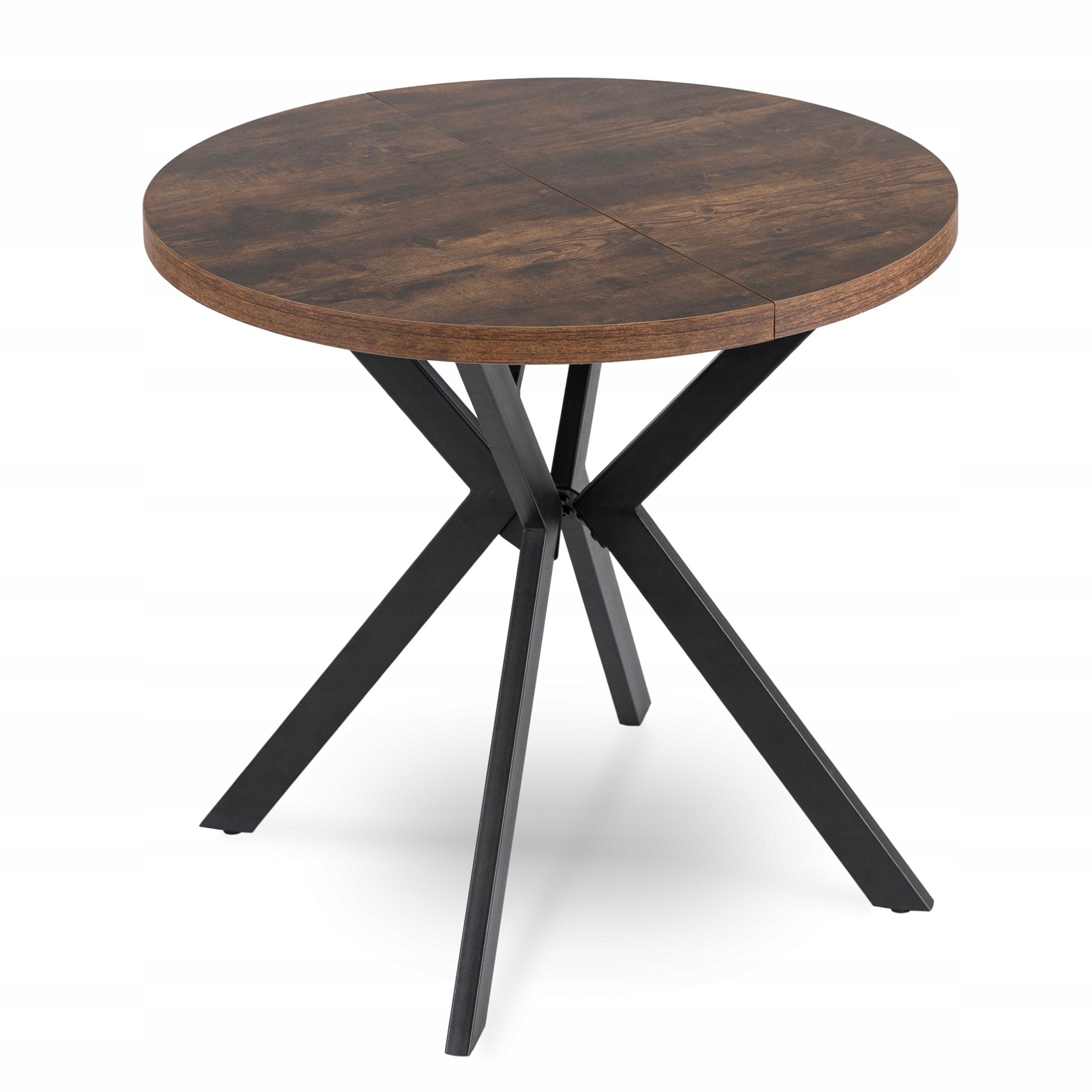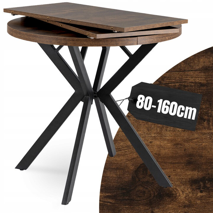 Stół Rozkładany Okrągły 80 Do Salonu Dąb Rustykalny Czarny Loft DORIAN ⭐⭐⭐⭐⭐