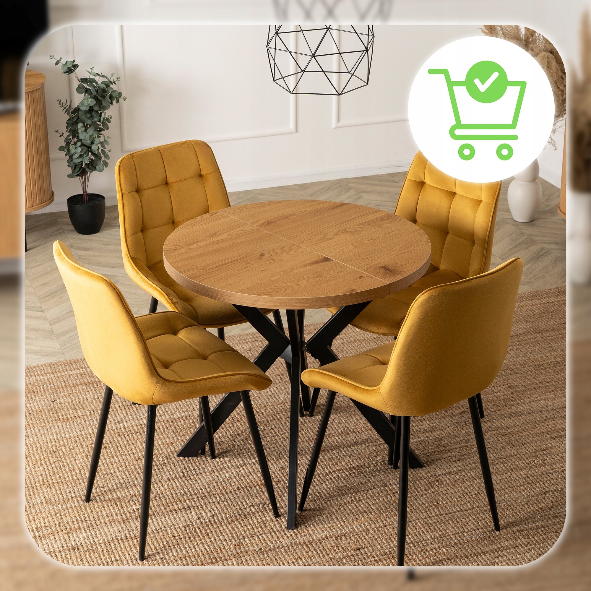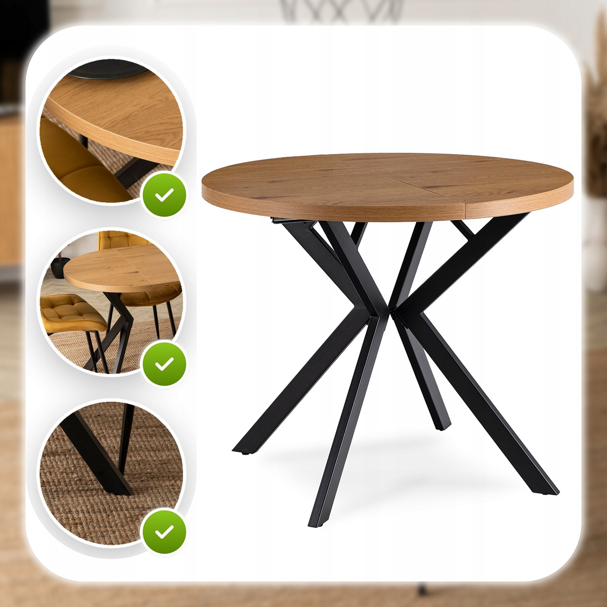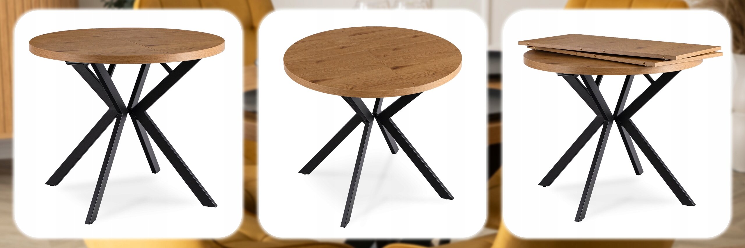 ✨ Stół Rozkładany Okrągły Kuchenny Do Jadalni Kuchni Salonu Dąb Czarny DORIAN