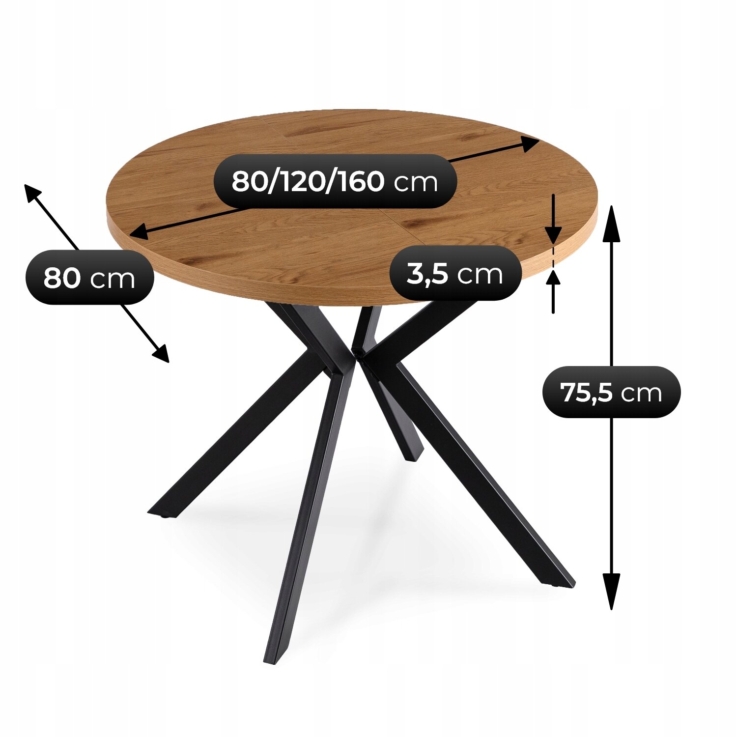 Stół o wymiarach 80/120/160 × 80 × 75,5 cm to idealny wybór do jadalni, kuchni lub salonu.