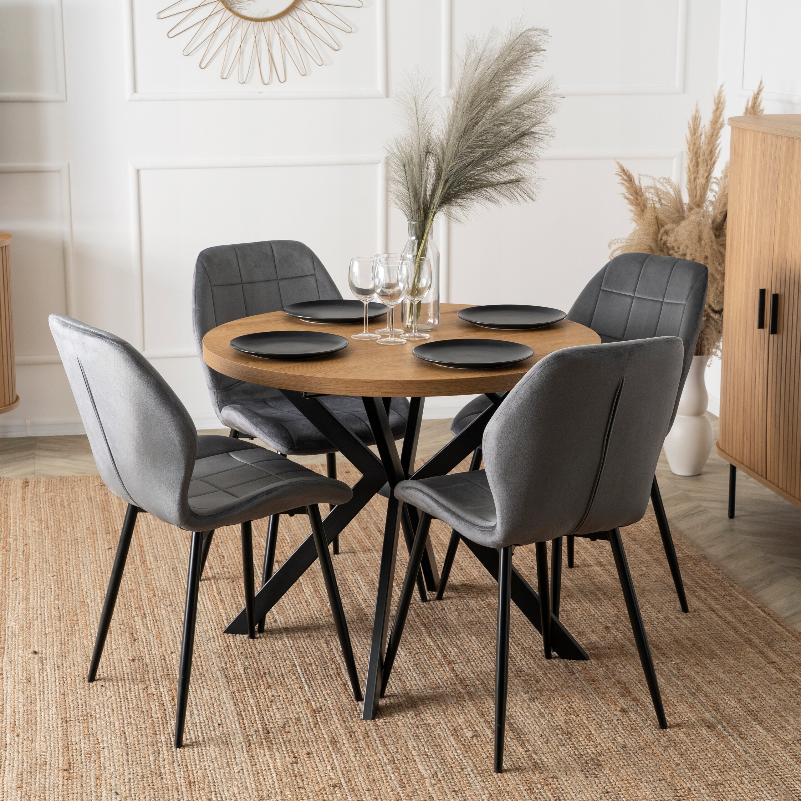 Jego rozsuwany, okrągły blat w kolorze kaszmiru prezentuje się niezwykle elegancko i nowocześnie.