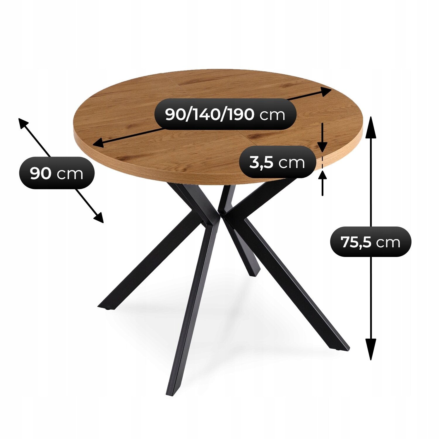 Stół Rozkładany Okrągły Kuchenny Do Jadalni Kuchni Salonu Loft Dąb LUGO