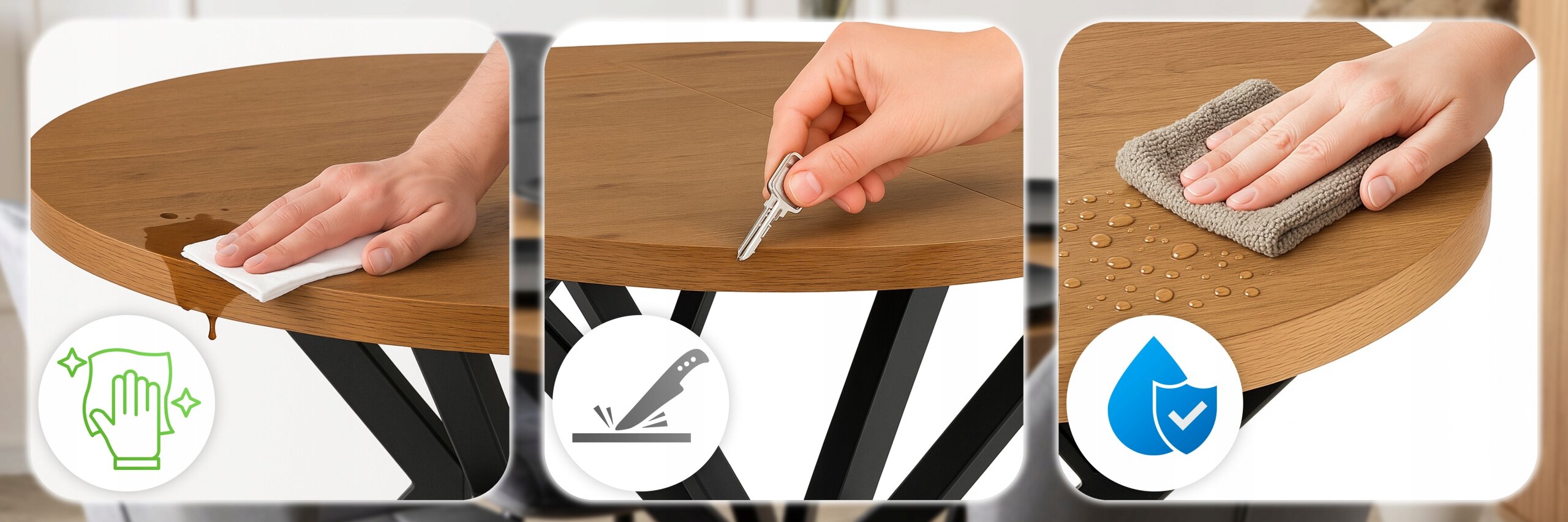 Czy blat stołu jest stabilny i łatwy w czyszczeniu?