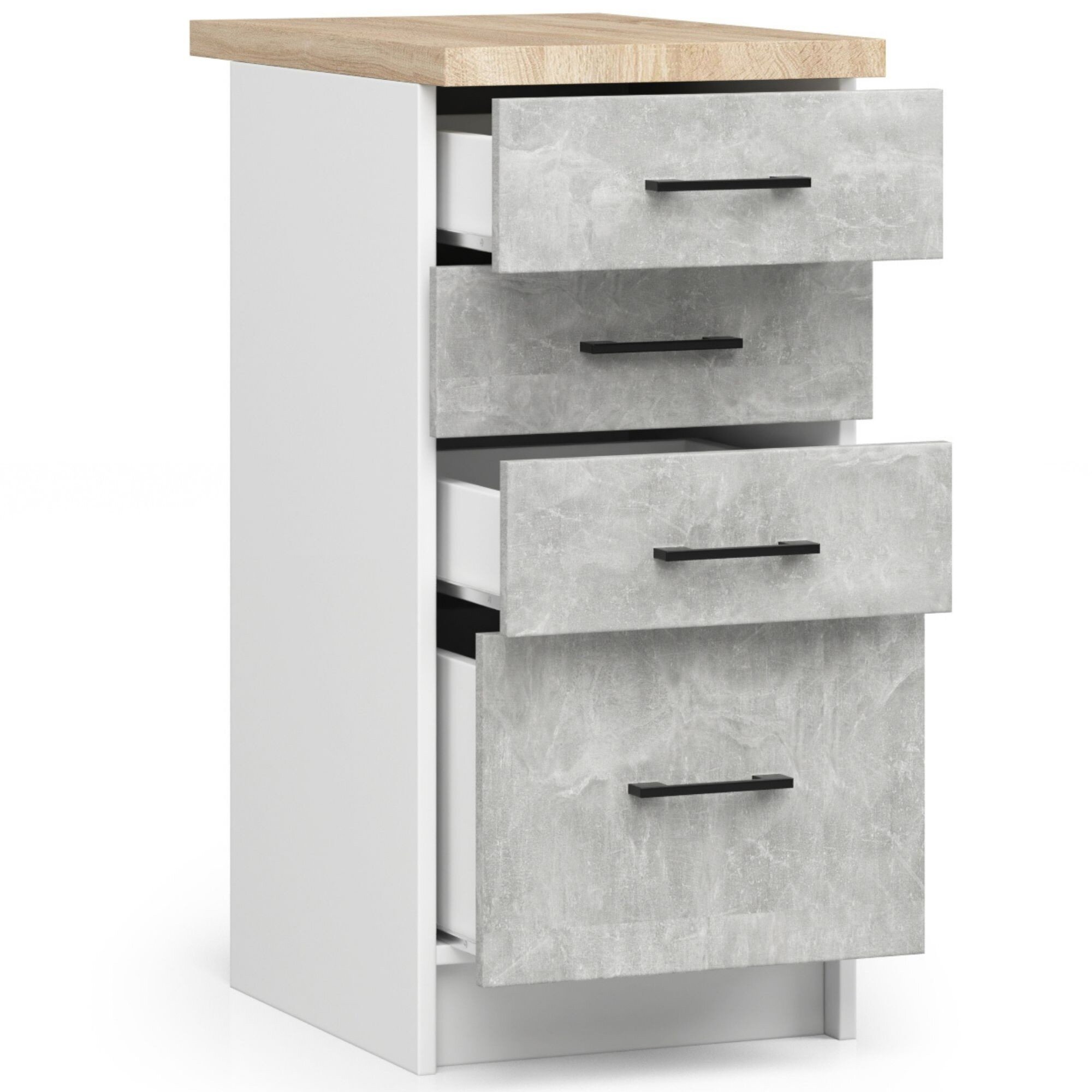 Szafka kuchenna Akord S40 z blatem system Oliwia Biała 40 cm 4 szuflady kolor Beton mat 40x46x85 cm