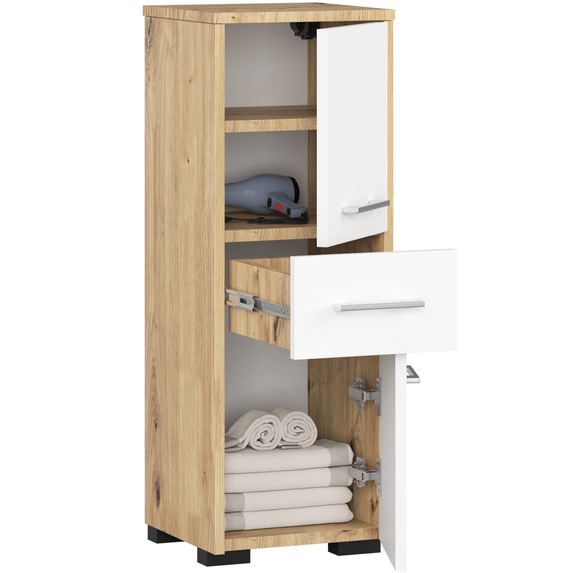 - Szafka łazienkowa AKORD FIN Dąb Artisan 30 cm 2 drzwi 1 szuflada kolor Biały mat 3 półki 30x30x85 cm