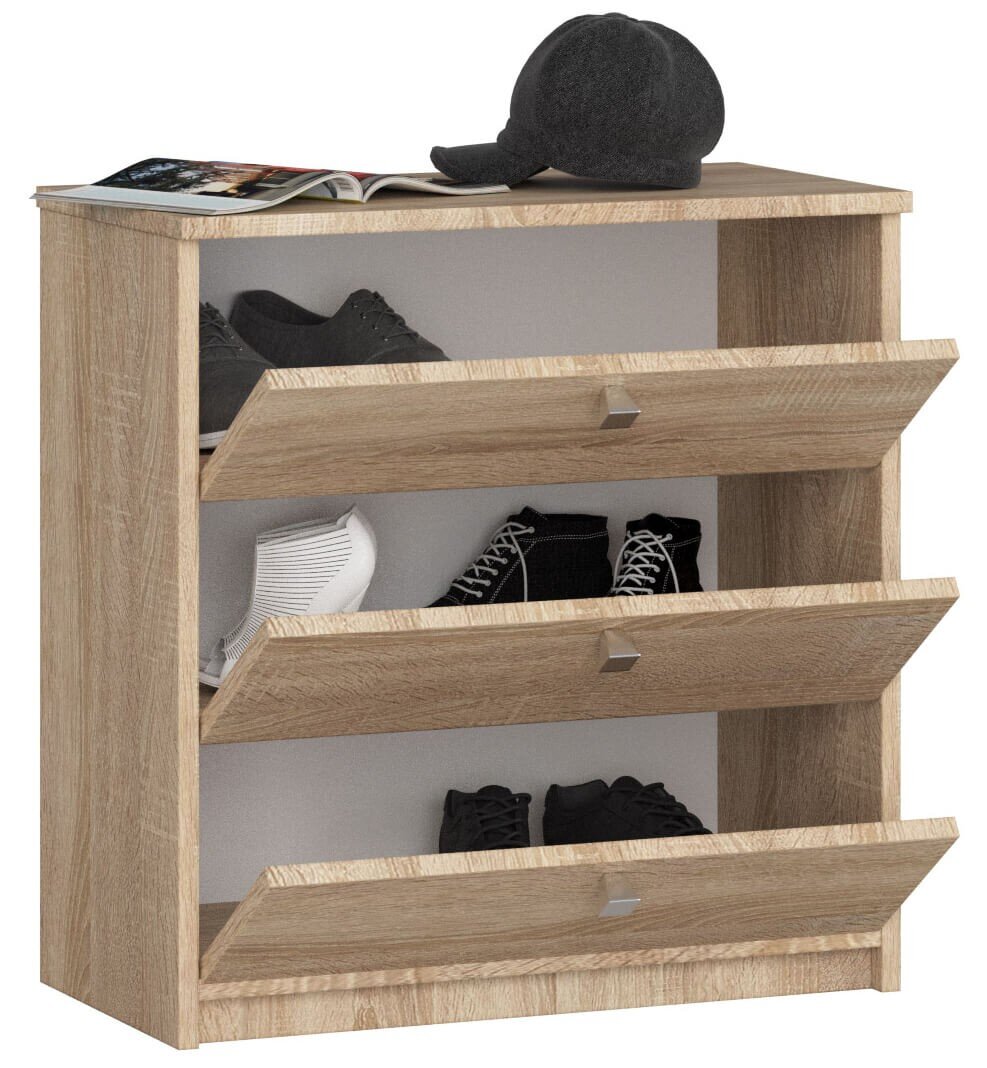 Szafka na buty AKORD MINI Dąb Sonoma 60 cm 3 drzwi kolor Dąb Sonoma mat 3 półki 60x31x62 cm