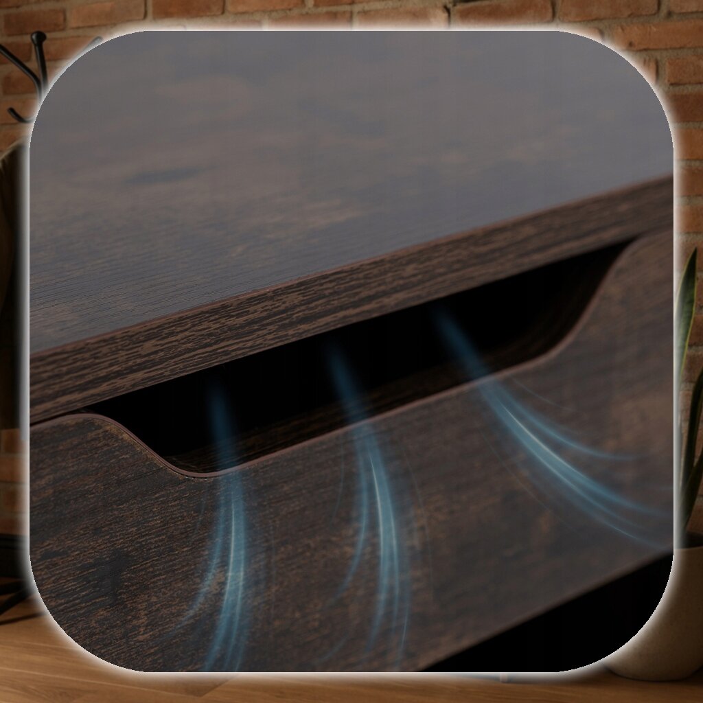 Szafka ALEC została wyposażona w sprytny otwór wentylacyjny w klapie schowka, który umożliwia swobodną cyrkulację powietrza wewnątrz mebla. Dzięki temu przechowywane buty i akcesoria pozostają świeże, a Ty unikniesz gromadzenia się nieprzyjemnych zapachów.