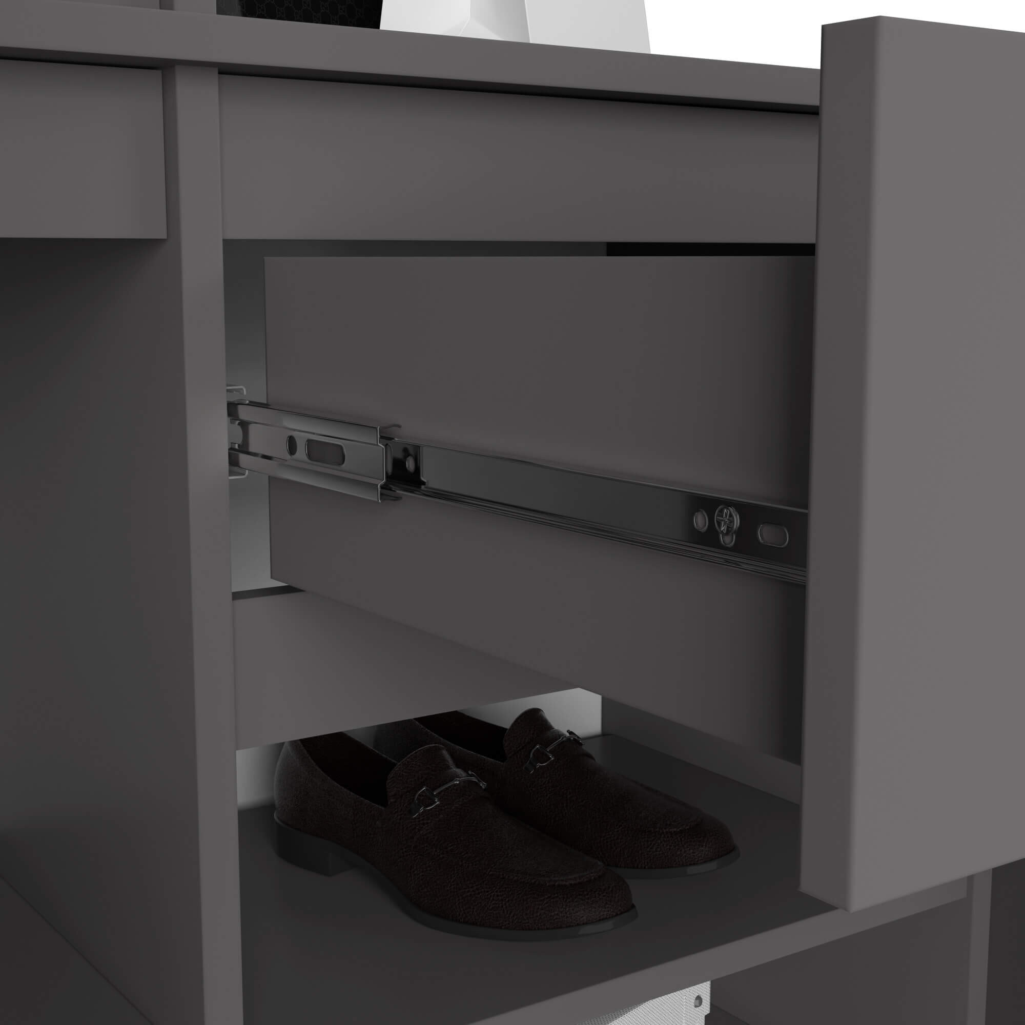 - WYMIARY I POJEMNOŚĆ: Zestaw o szerokości 95 cm, wysokości 183 cm i głębokości 35 cm, zaprojektowany tak, aby efektywnie zagospodarować przestrzeń, nawet w wąskich korytarzach, z miejscem na około 12 par butów.