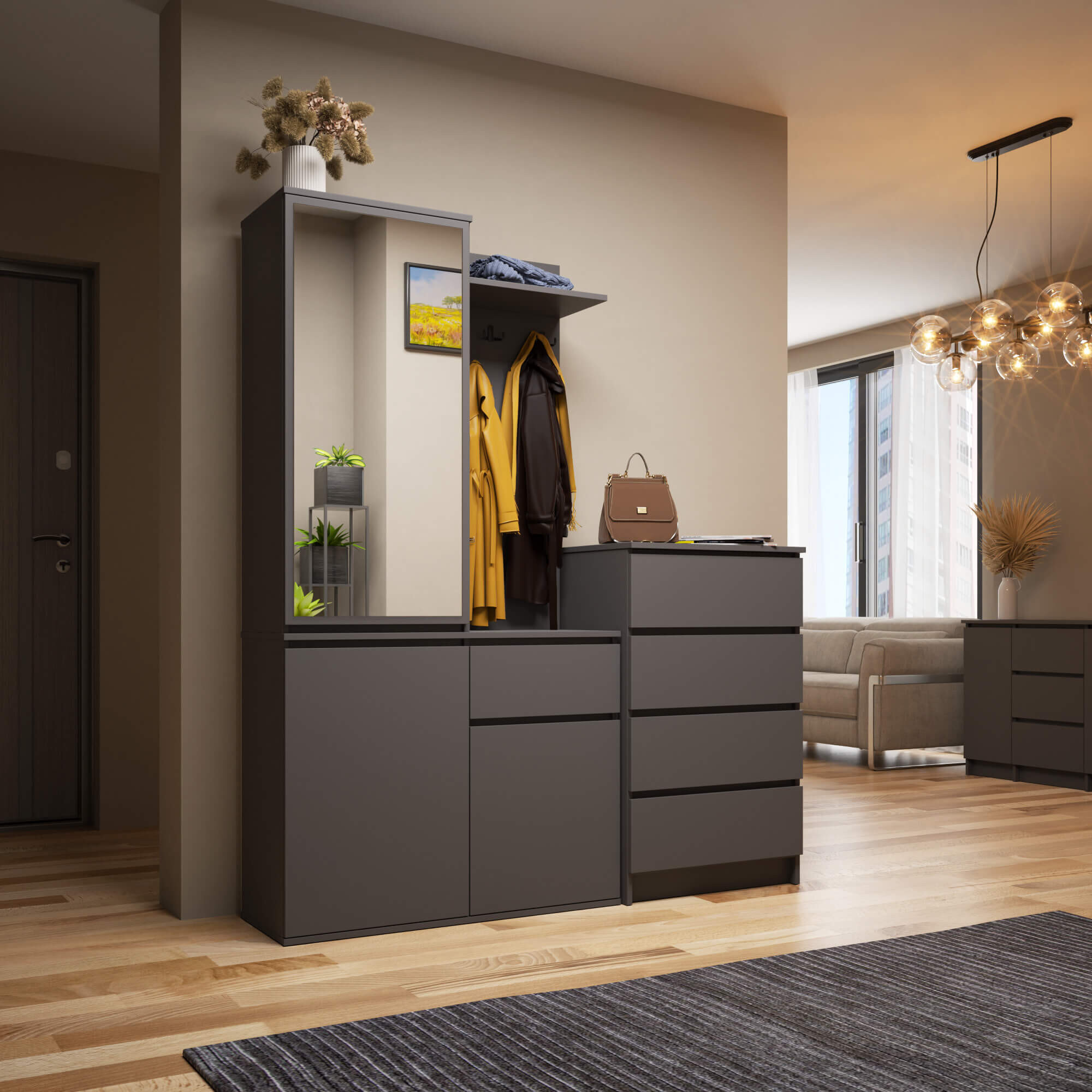 Zestaw do przedpokoju z lustrem AKORD ENTRO Grafit Szary 95 cm 1 szuflada 3 drzwi 7 półek 95x35x183 cm
