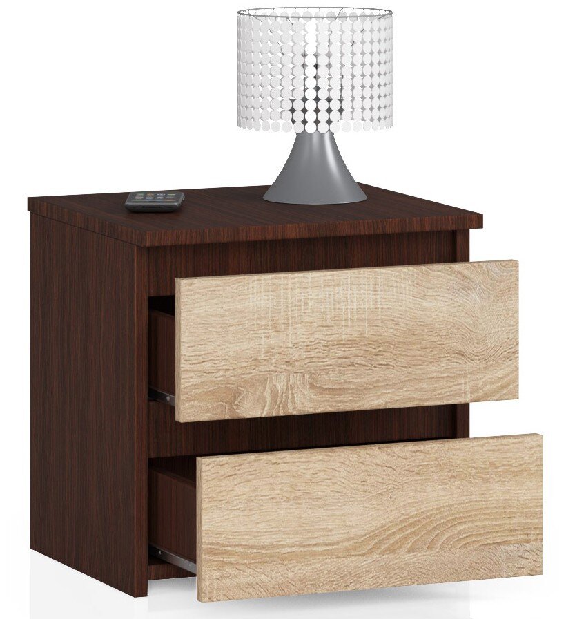 Szafka nocna AKORD CL2 Wenge 40 cm 2 szuflady kolor Dąb Sonoma mat 40x35x40 cm