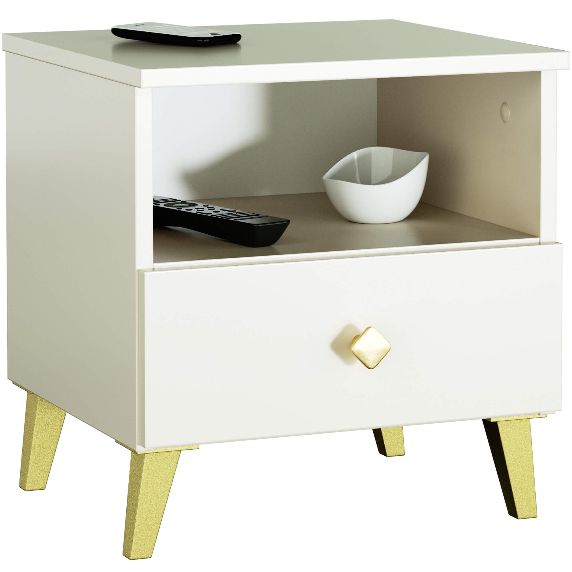 - FUNKCJONALNY DESIGN: Nakastlik wyposażony w pojemną szufladę i dodatkową półkę. Stolik nocny AKORD MOBI umożliwia doskonałą organizację Twoich niezbędnych przedmiotów, zapewniając porządek w przestrzeni nocnej.
