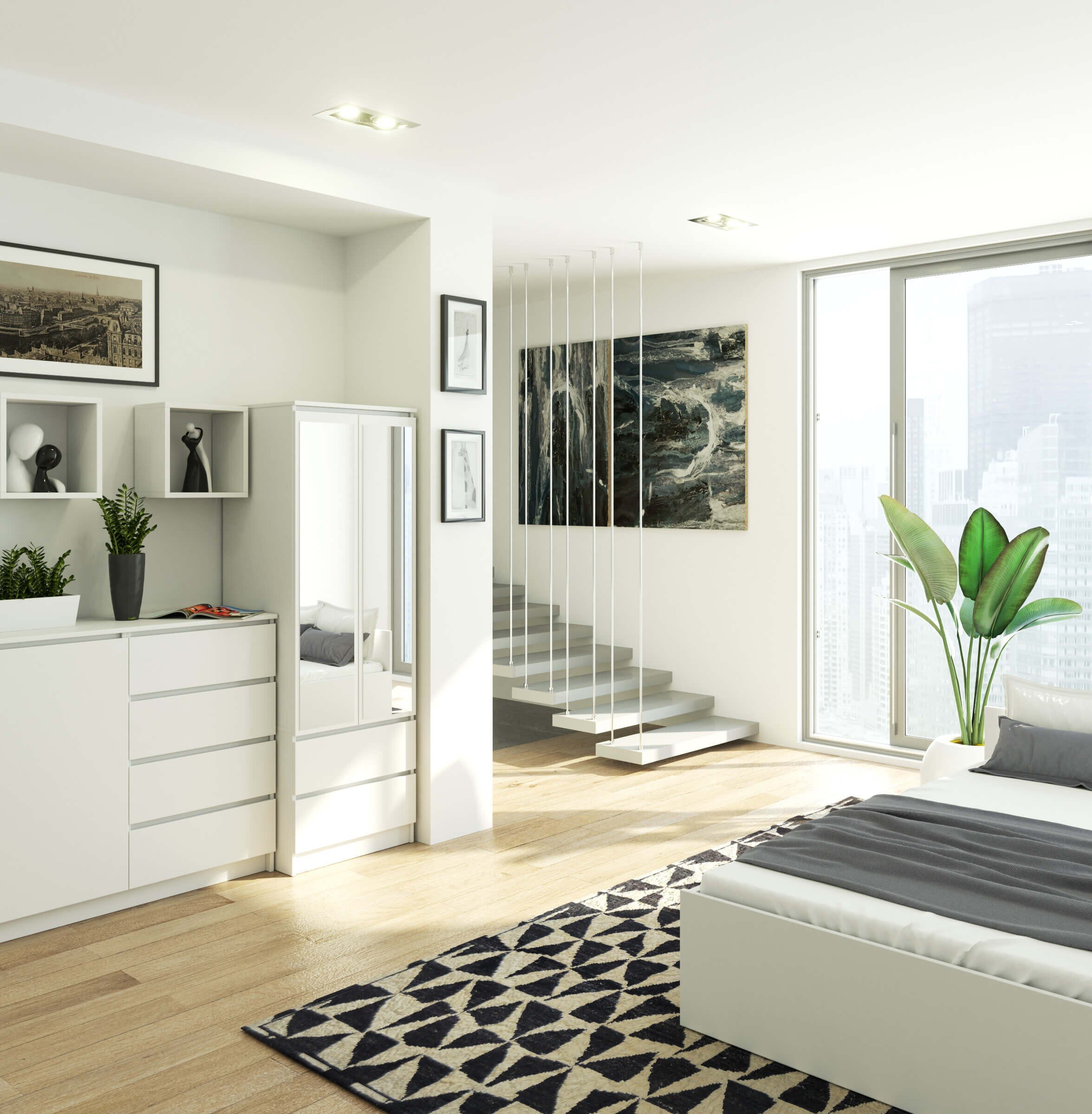 - NOWOCZESNY DESIGN: Prosty i minimalistyczny wygląd, który doskonale komponuje się z nowoczesnymi wnętrzami. Szafa otwiera się dzięki specjalnym wycięciom na frontach, bez potrzeby stosowania uchwytów.