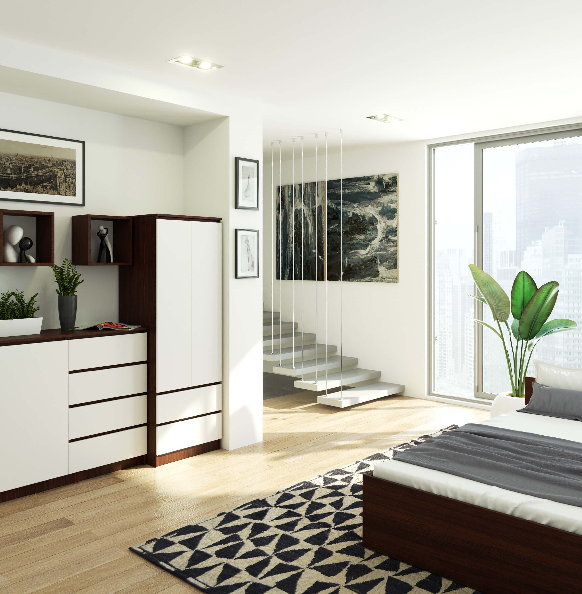- MINIMALISTYCZNY STYL: Prosty, nowoczesny design szafki bez uchwytów, otwieranej dzięki dyskretnym wycięciom na frontach, który idealnie komponuje się z nowoczesnymi wnętrzami.