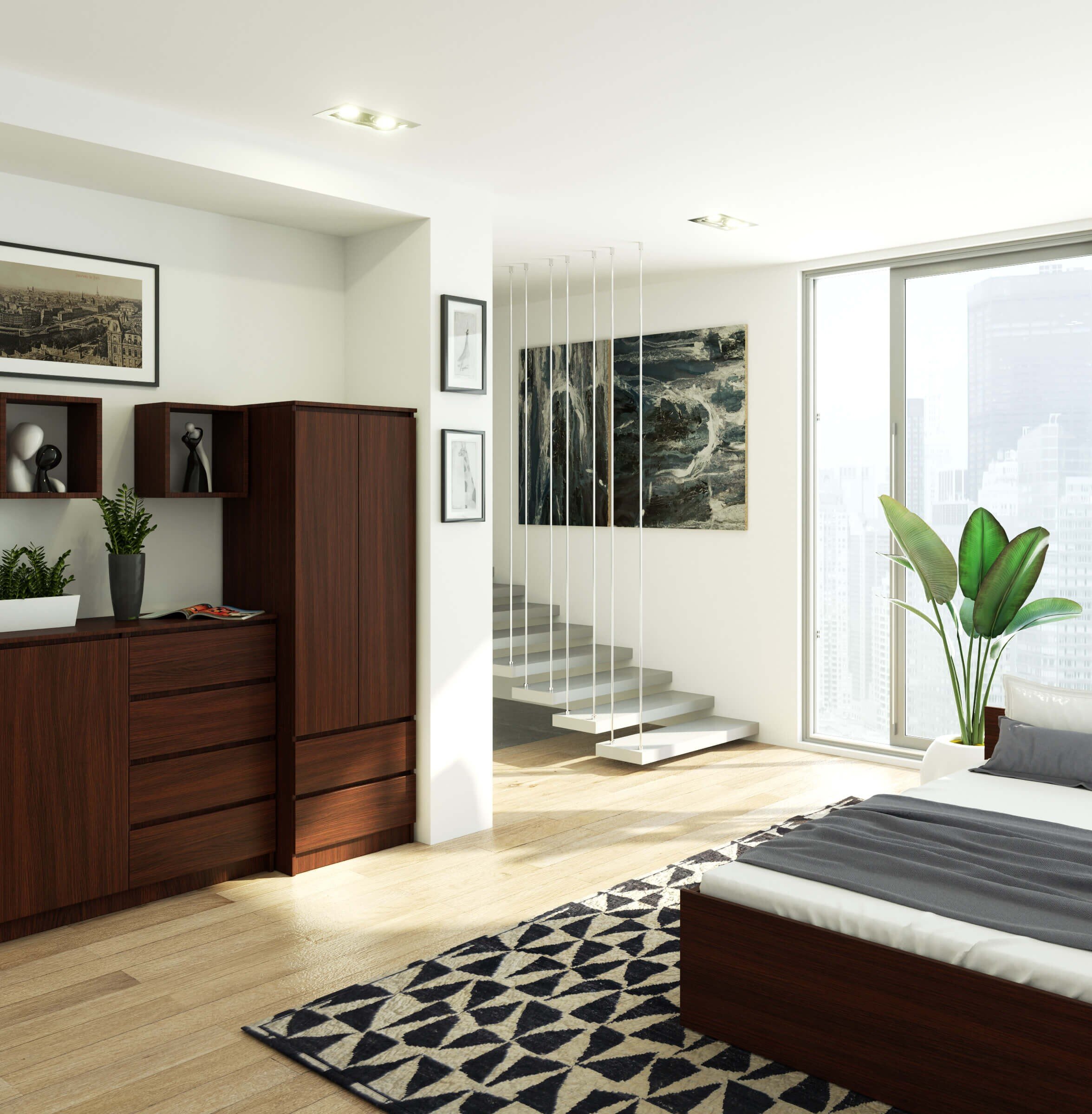 - MINIMALISTYCZNY STYL: Prosty, nowoczesny design szafki bez uchwytów, otwieranej dzięki dyskretnym wycięciom na frontach, który idealnie komponuje się z nowoczesnymi wnętrzami.