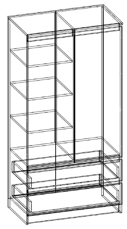 Szafa 90 cm z dwiema szufladami, 4 wewnętrznymi półkami i miejscem na wieszaki przynosi świetną funkcjonalność. Doskonały wybór dla klientów projektujących przedpokój, małą sypialnię czy pokój dziecięcy. Układ mebli pozwala na wygodne przechowywanie odzieży, bielizny, przydatnych drobiazgów i rzeczy osobistych.