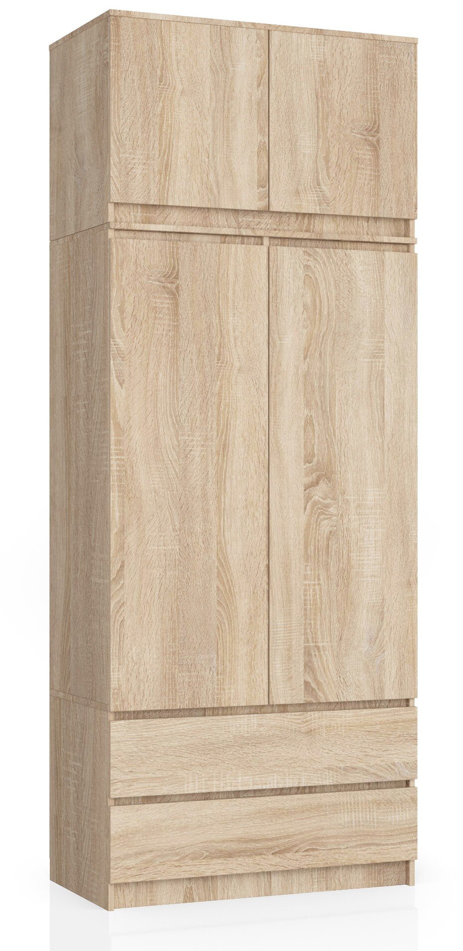 Szafa Akord S90 z nadstawką Dąb Sonoma 90 cm 2 drzwi 2 szuflady kolor Dąb Sonoma mat 6 półek 90x51x234 cm