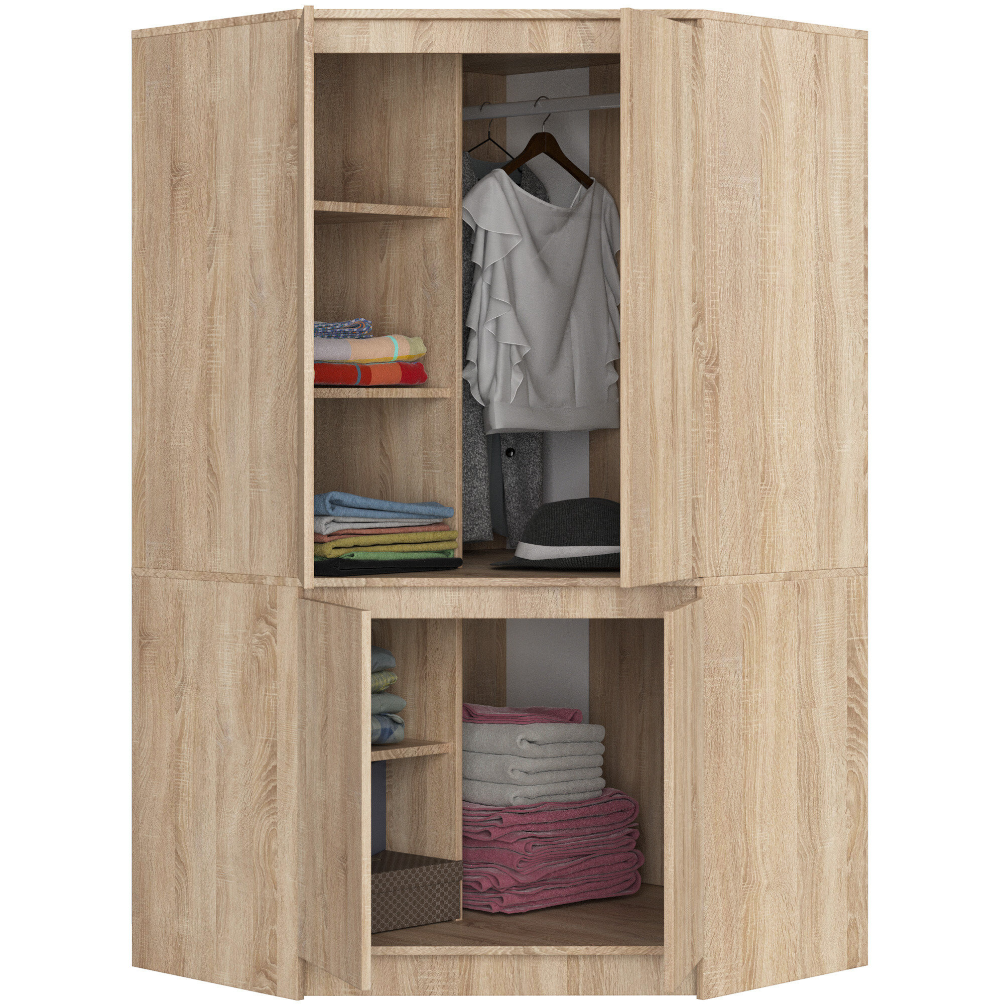 - Szafa narożna AKORD S100 Dąb Sonoma 100 cm 4 drzwi fronty kolor Dąb Sonoma mat 6 półek 100x50x180 cm