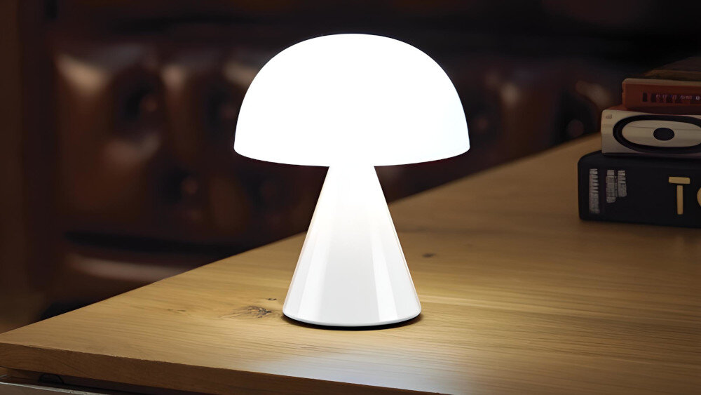 Stylowy kształt grzybka i niewielkie wymiary sprawiają, że lampa Lexon Mina Mini może stanowić element dekoracyjny wystroju wnętrza.