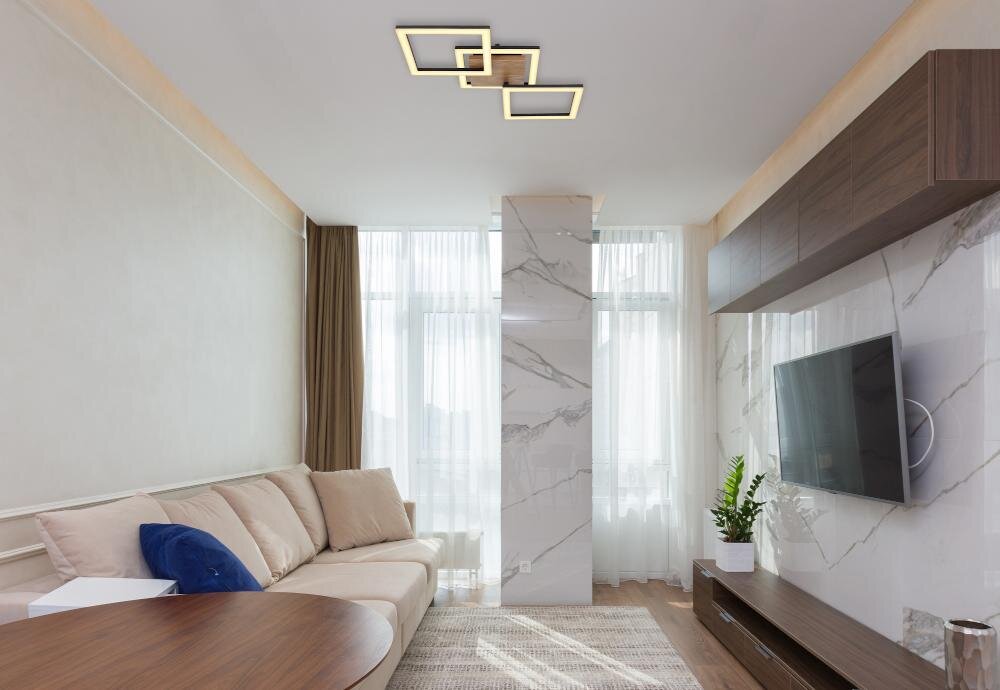 Dodaj atrakcyjności swojemu pomieszczeniu, kupując lampę sufitową GLOBO Kerry 67280-30, z 3 źródłami światła. Lampa prezentuje się niezwykle elegancko, dzięki podstawie imitującej drewno, na której umieszczone są 3 ledowe panele, o kształcie kwadratu.