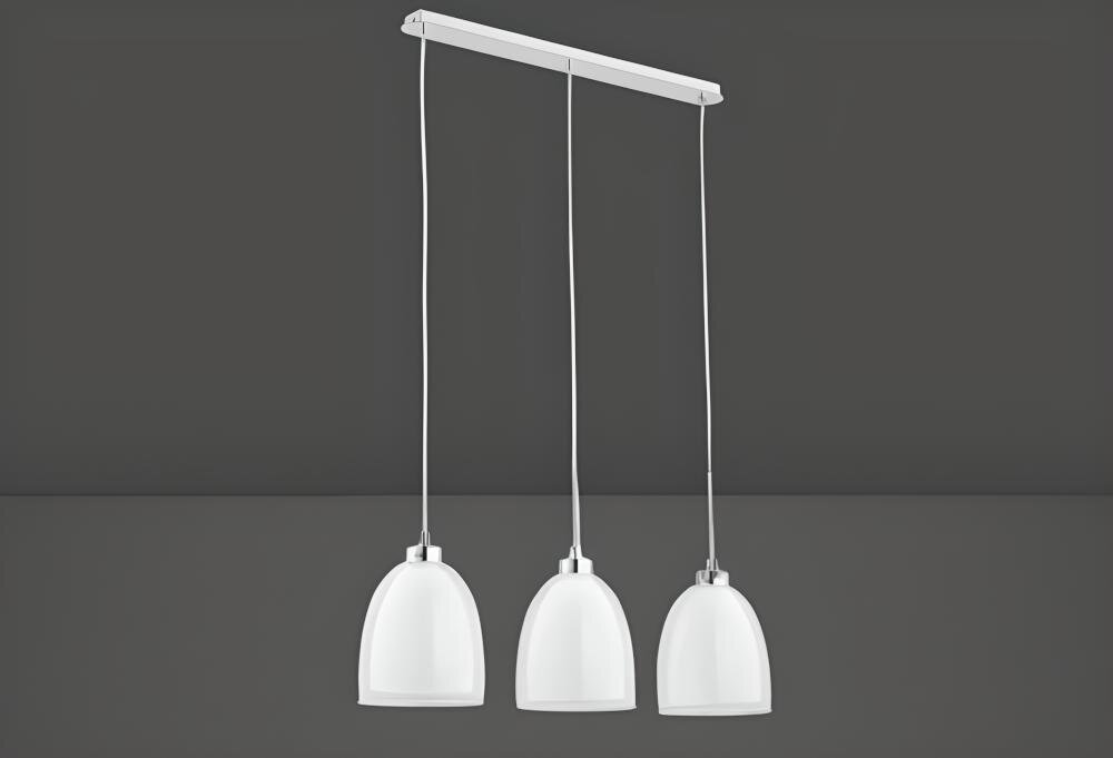 Lampa sufitowa ALFA Ronda A60138 o wymiarach: 175 x 700 x 1000 mm (zwis maksymalny 100 cm) z 3 źródłami światła, wyposażona jest w ozdobne, szklane klosze, które dodają jej uroku i stylu. Lampa wykonana jest z metalu, który charakteryzuje się trwałością i odpornością. Wyposażona jest w rodzaj gwintu E27. Źródło światła może być wymienne o max. mocy do 3 x 60 W. Typ źródła światła: LED. Brak żarówek w zestawie.