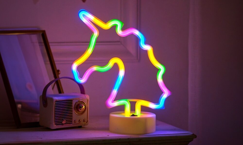 Podstawka umożliwiająca postawienie neonu na dowolnej płaskiej powierzchni. Dodatkowo podstawka jest wyposażona w wygodny włącznik, dzięki któremu możesz łatwo kontrolować oświetlenie bez konieczności odłączania kabla lub baterii.