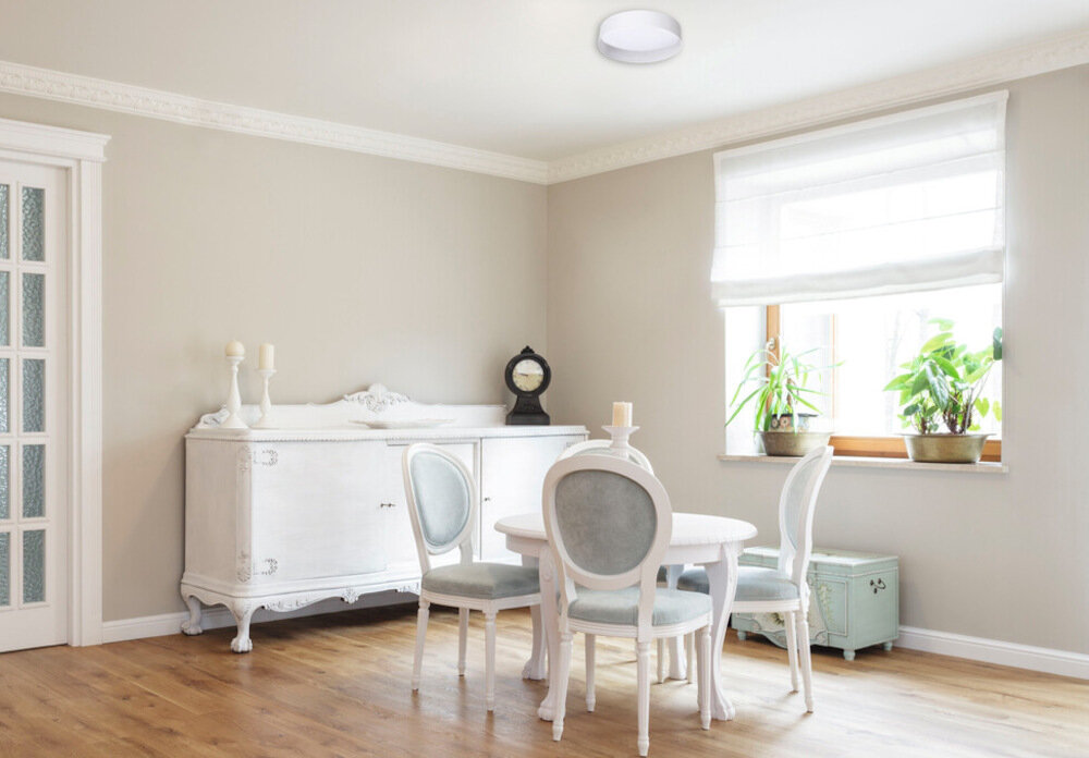 Plafon ma zintegrowane źródło zasilania w postaci diod LED. Diody o mocy 17,5 W emitują dwie barwy światłą – neutralną oraz ciepłą, dzięki czemu możemy w prosty sposób dopasować oświetlenie do swoich potrzeb. Lampa KANLUX RIFA LED to idealne rozwiązanie dla osób, które potrzebują mocnego światła, ale oczekują również estetycznego wyglądu. Strumień świetlny oprawy to aż 1500 lumenów, co przekłada się na doskonałą jakość świecenia.