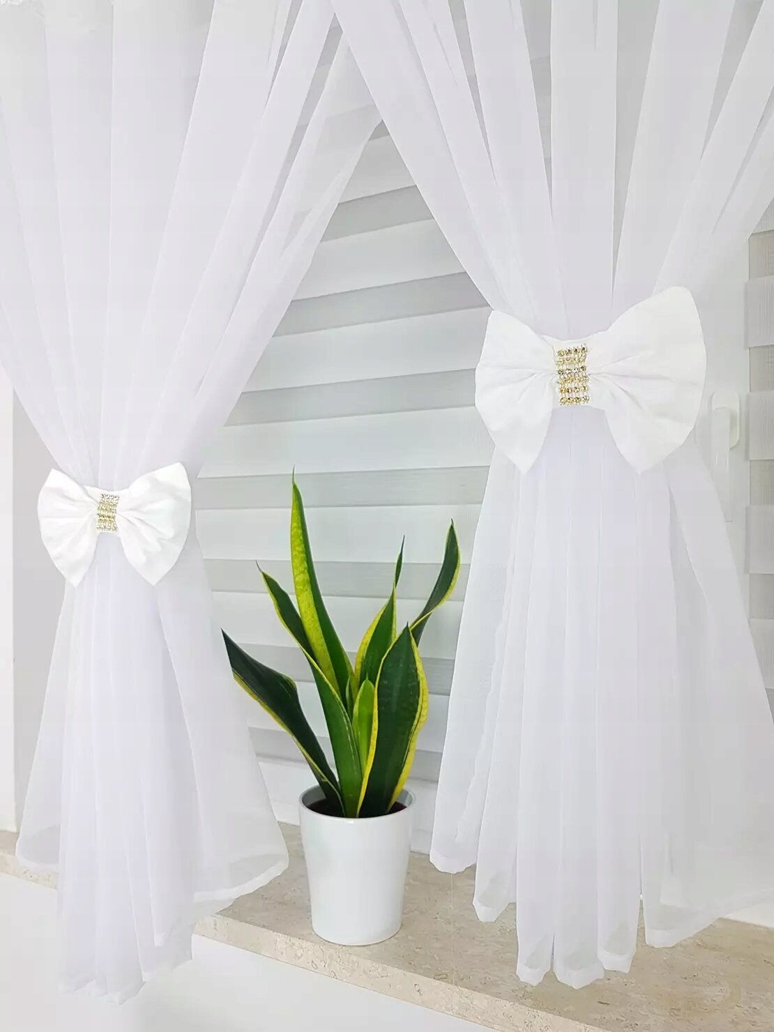 Dołączone tasiemki z kokardkami pozwalają upiąć firany w efektowne kokony, dodając wnętrzu uroku i przytulności.