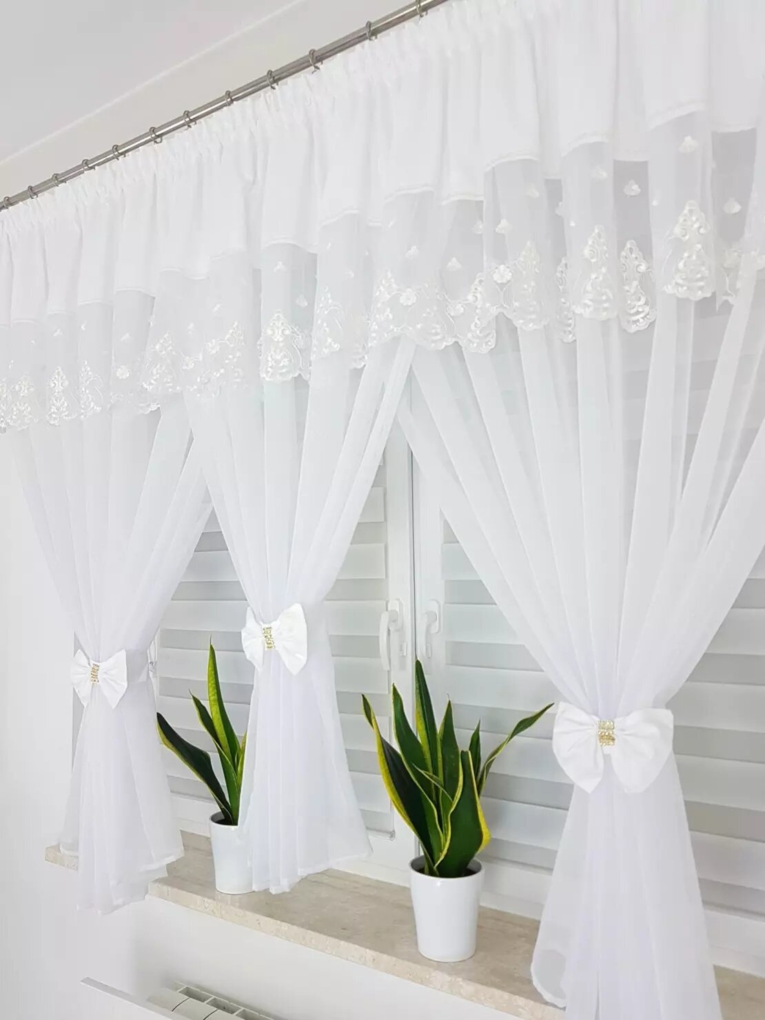 Elegancki Zestaw Firan z Woalu, Mikrofibry i Haftu Markizety – Idealny do Jadalni i Kuchni