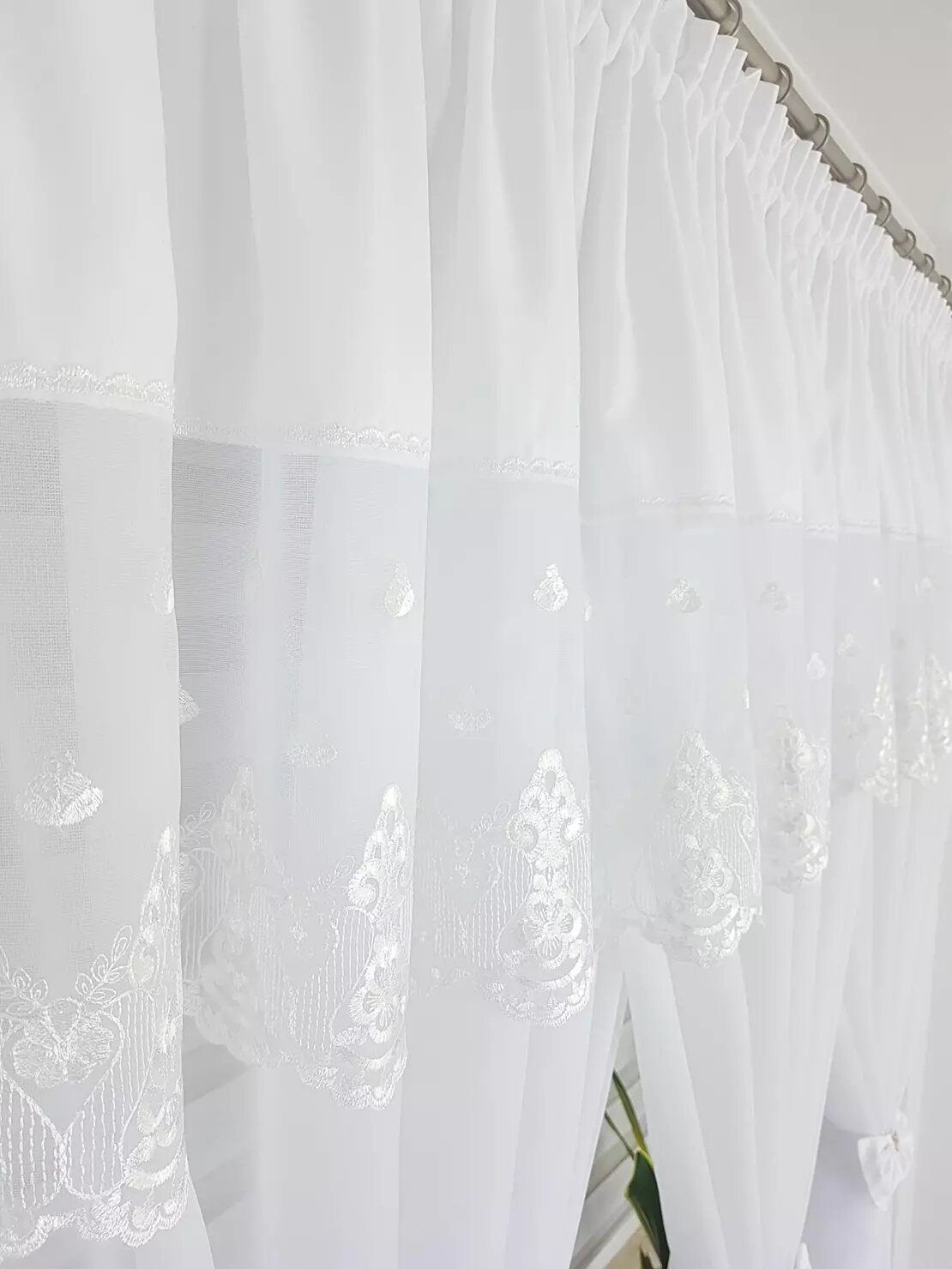 Wprowadź do swojego domu luksus i elegancję dzięki naszemu zestawowi firan z woalu, mikrofibry i haftu markizety.